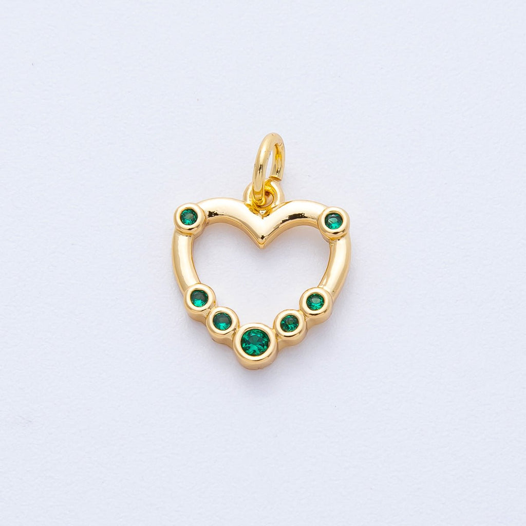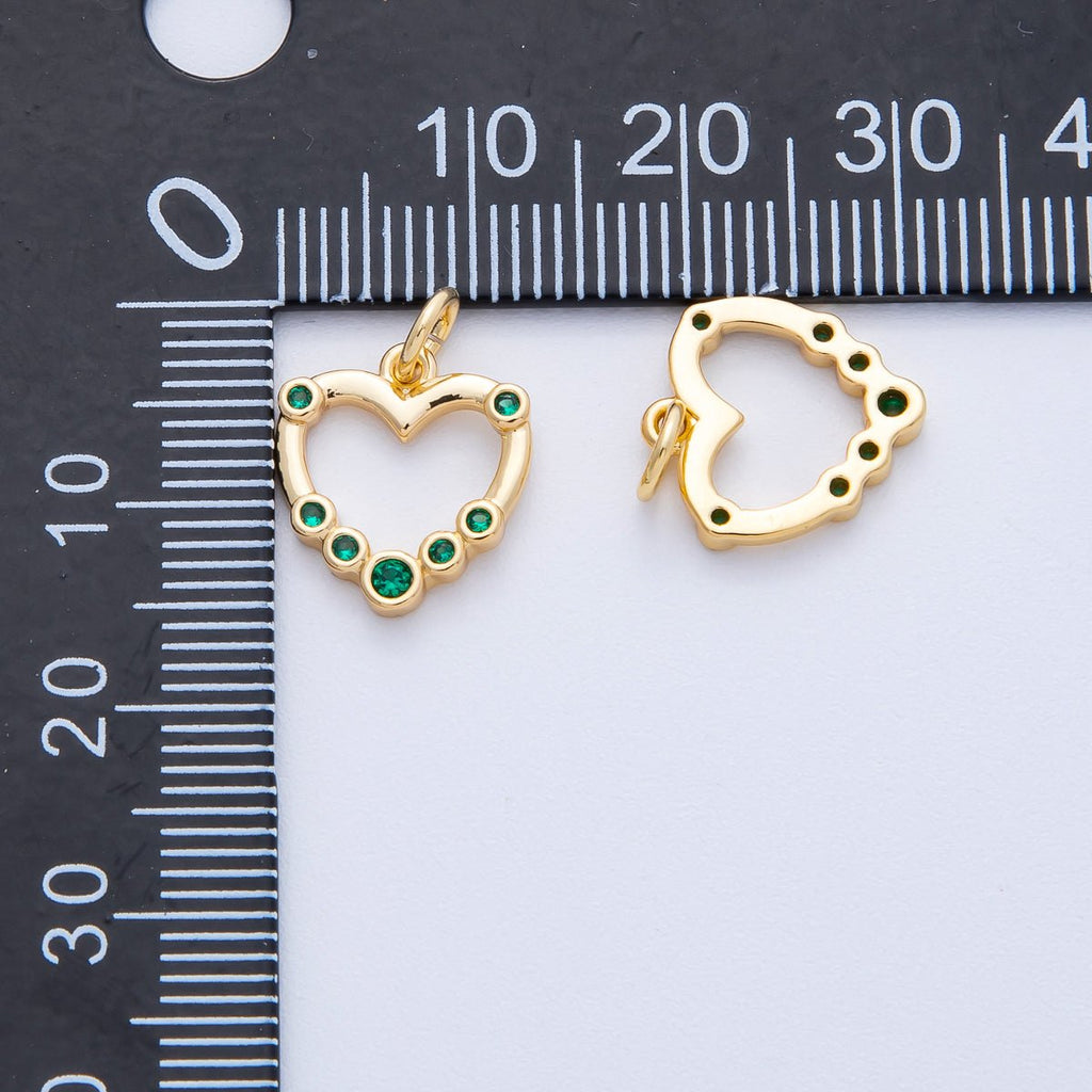 14K Gold Filled 13.3mm Green CZ Gradient Open Heart Charm | Charms-00068