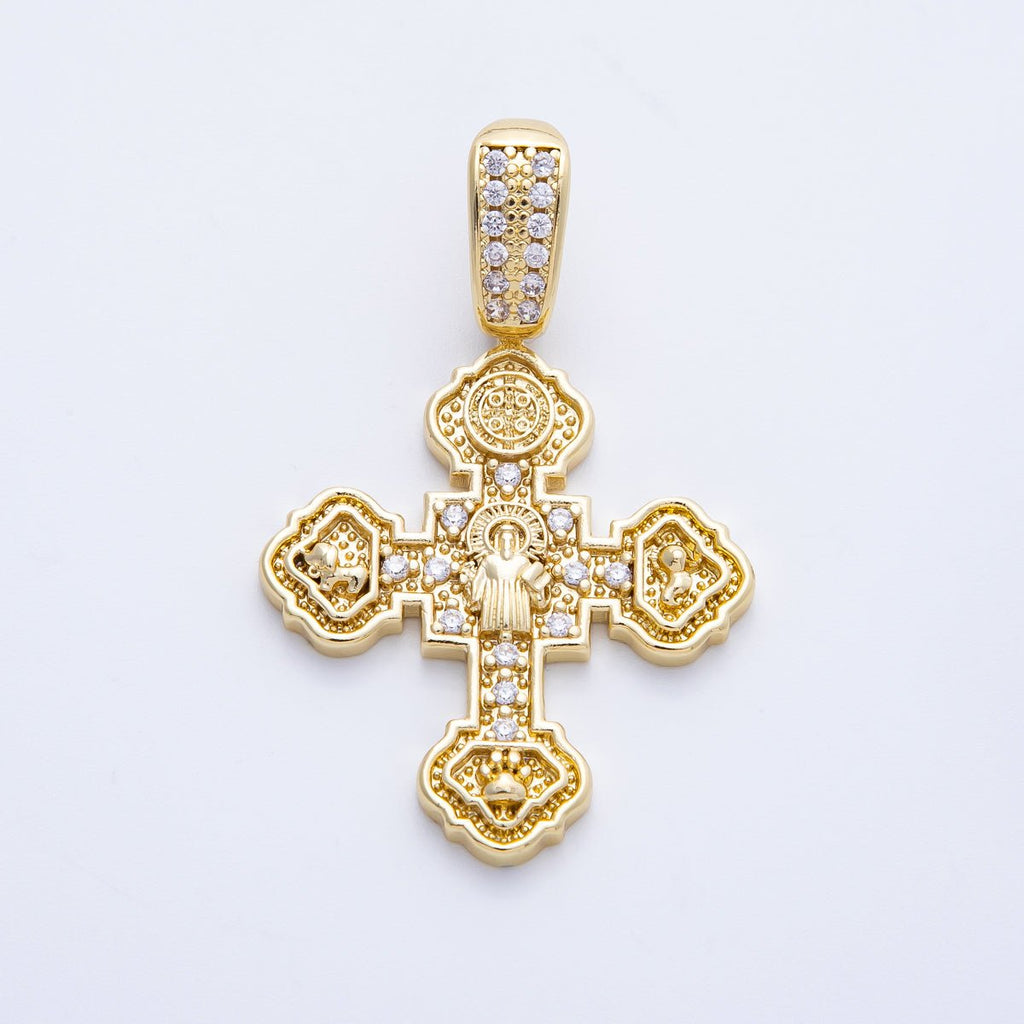 14K Gold Filled 45.5mm Micro Paved CZ Saint Benedict Medal Cross Pendant | Charms-00069
