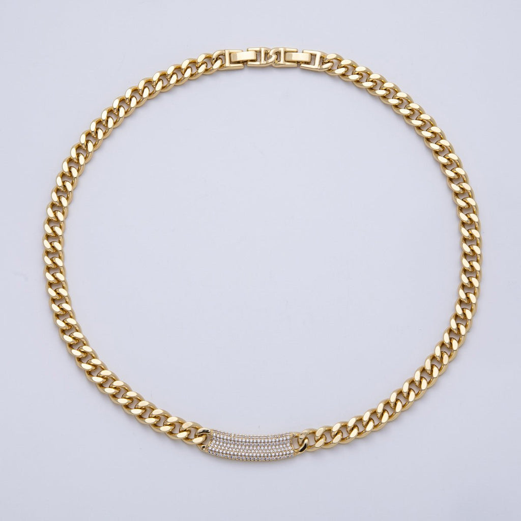 14K Gold Filled 8.5mm Micro Paved CZ Curb Chain 19 Inch Necklace | WA-4091