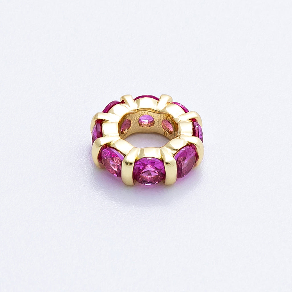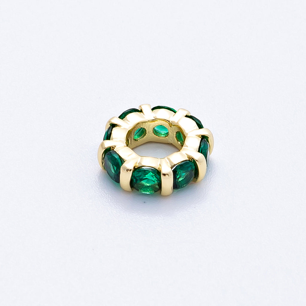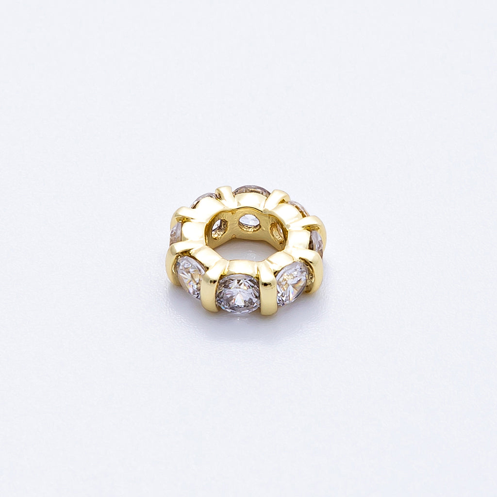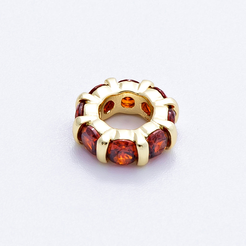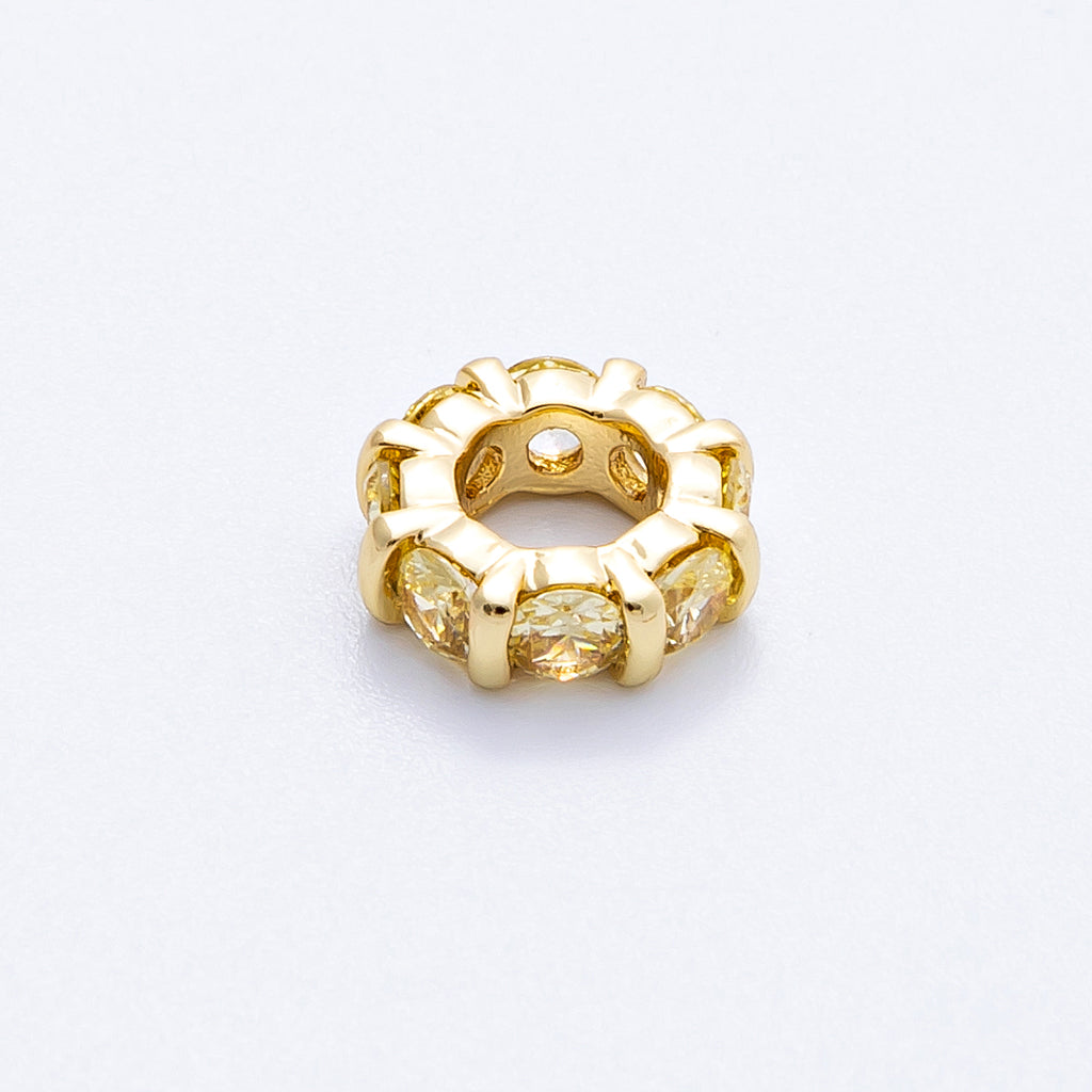 16K Gold Filled 10.5mm Personalized Birthstone Micro Paved Round CZ Rondelle Spacer Set | Beads-00113 - Beads-00124