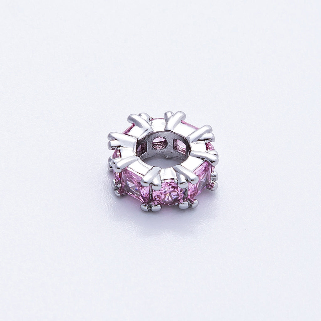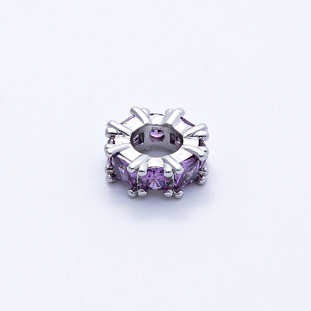 10mm Personalized Baguette Birthstone CZ Rondelle Spacer Set | Beads-00077 ~ Beads-00088