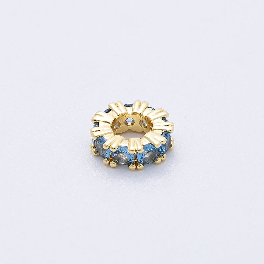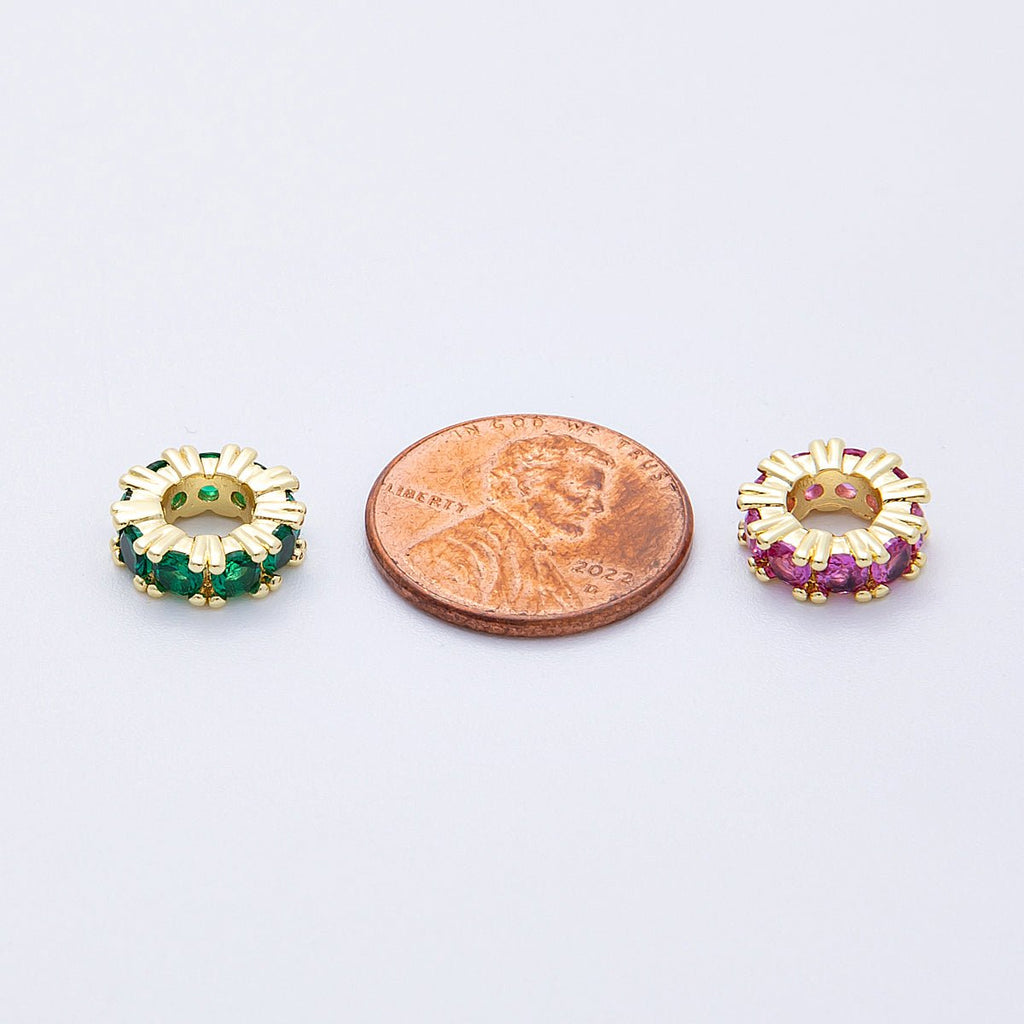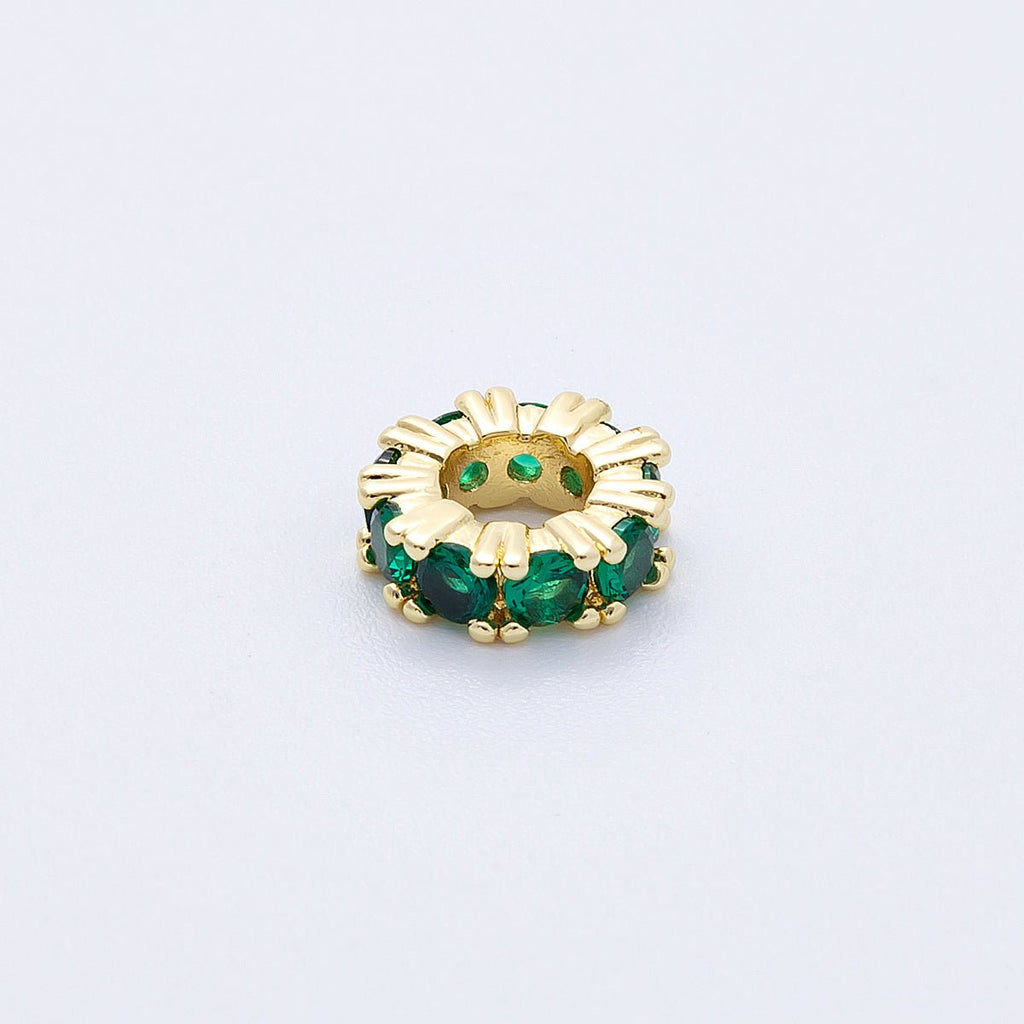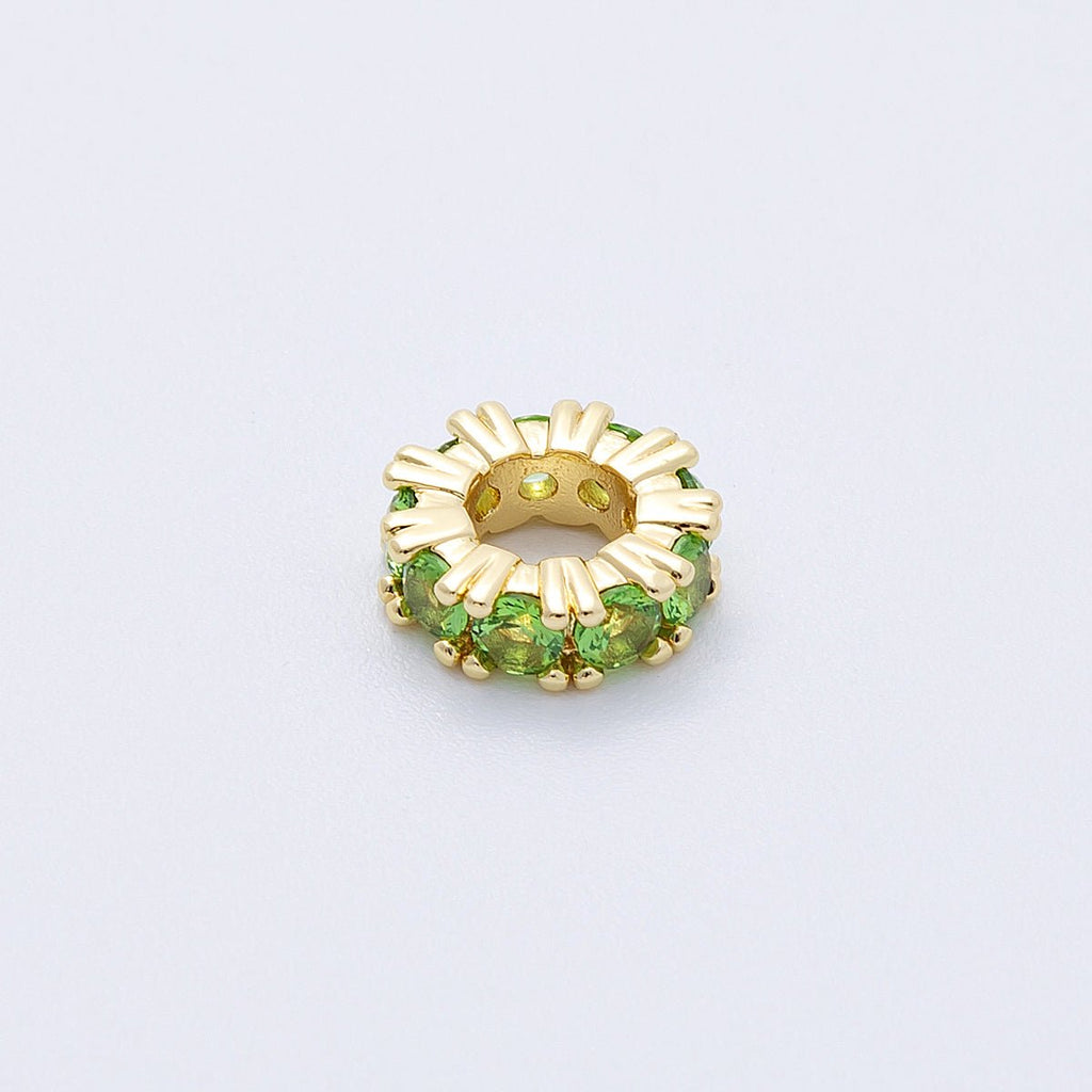 16K Gold Filled 11mm Birthstone Micro Paved CZ Personalized Rondelle Spacer Set | Beads-00064 ~ Beads-00076