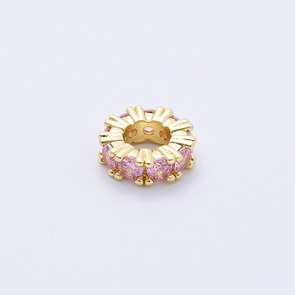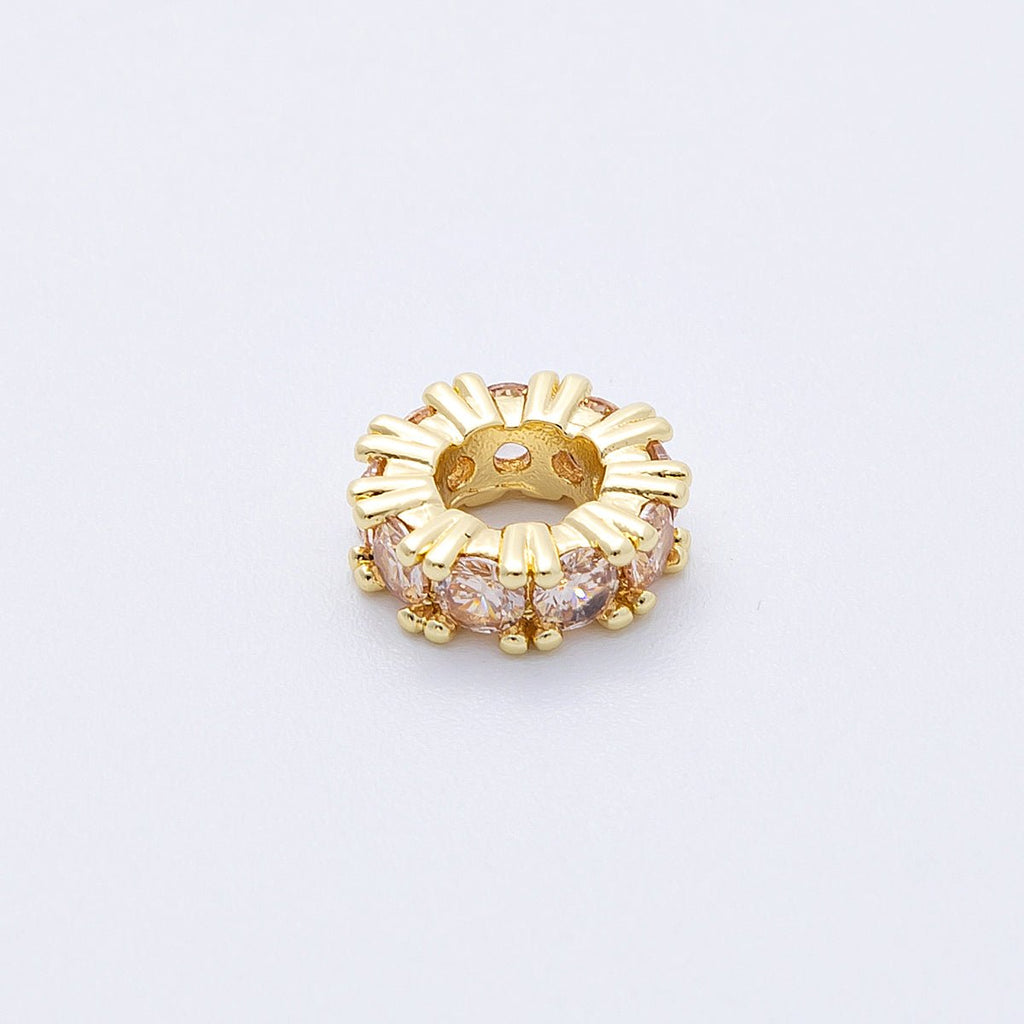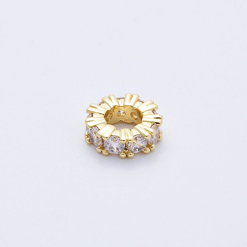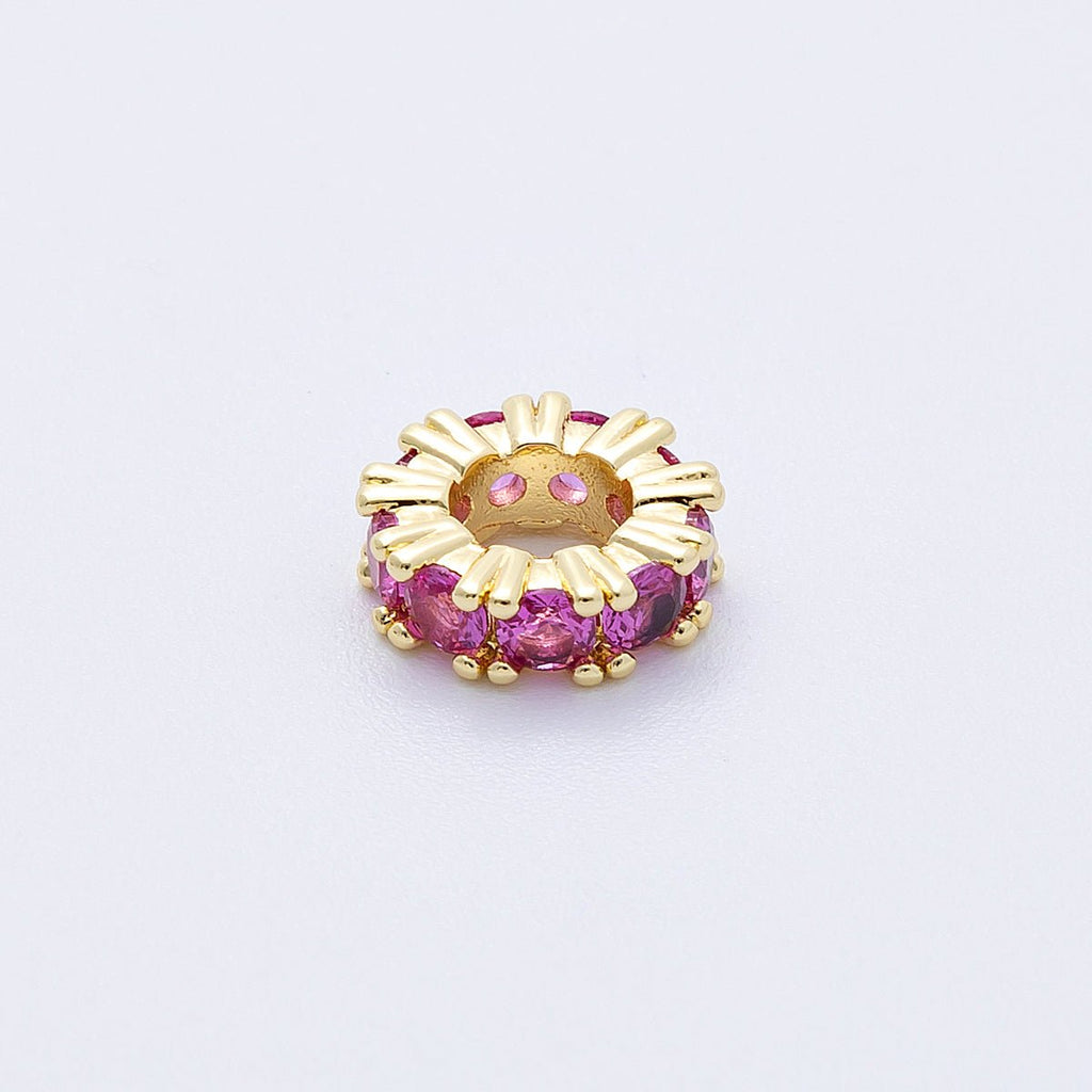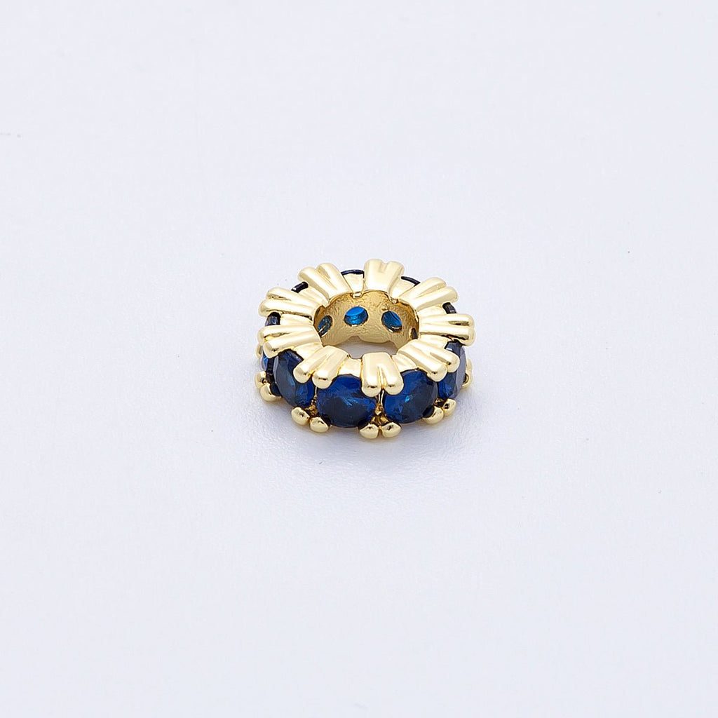 16K Gold Filled 11mm Birthstone Micro Paved CZ Personalized Rondelle Spacer Set | Beads-00064 ~ Beads-00076