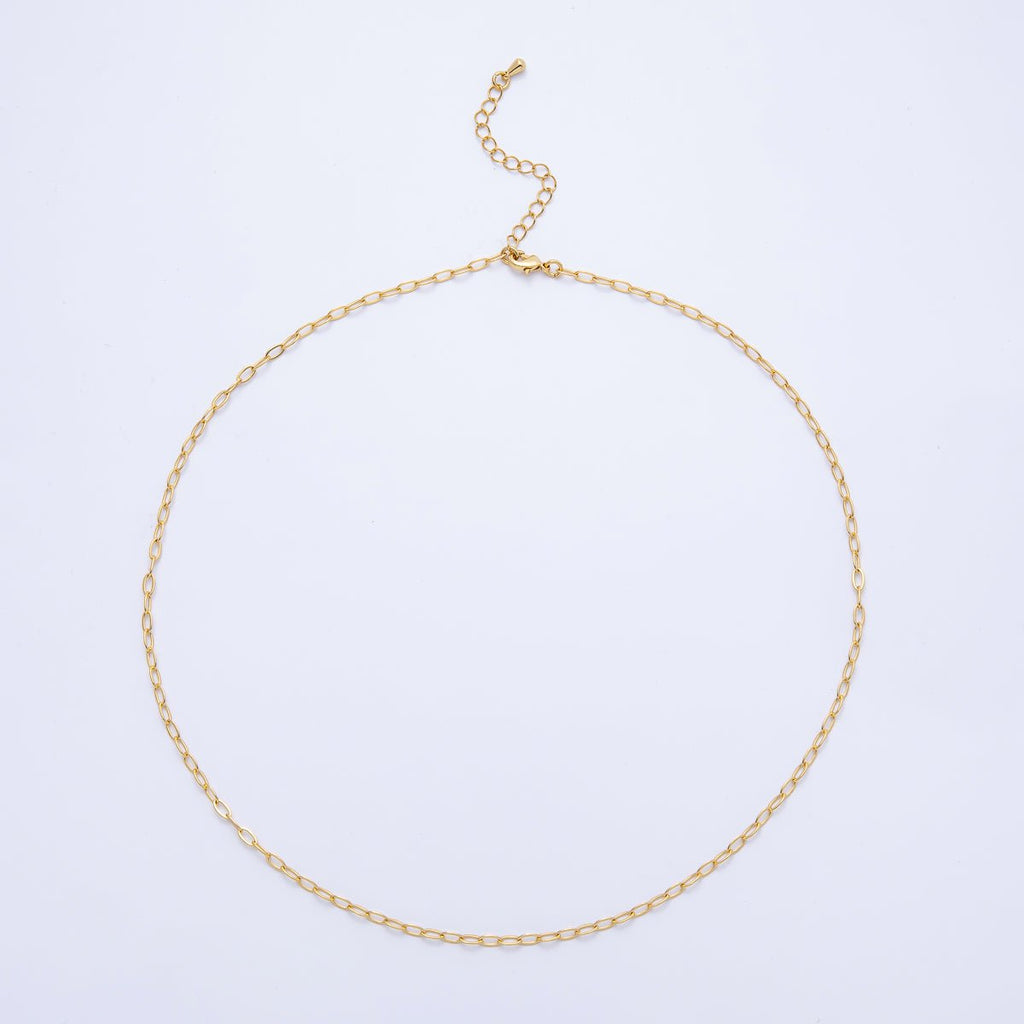 16K Gold Filled 2.5mm x 4.8mm Minimalist Paperclip Chain 18 Inch, 19.5 Inch Necklace w. Extender | WA-4066 WA-4067