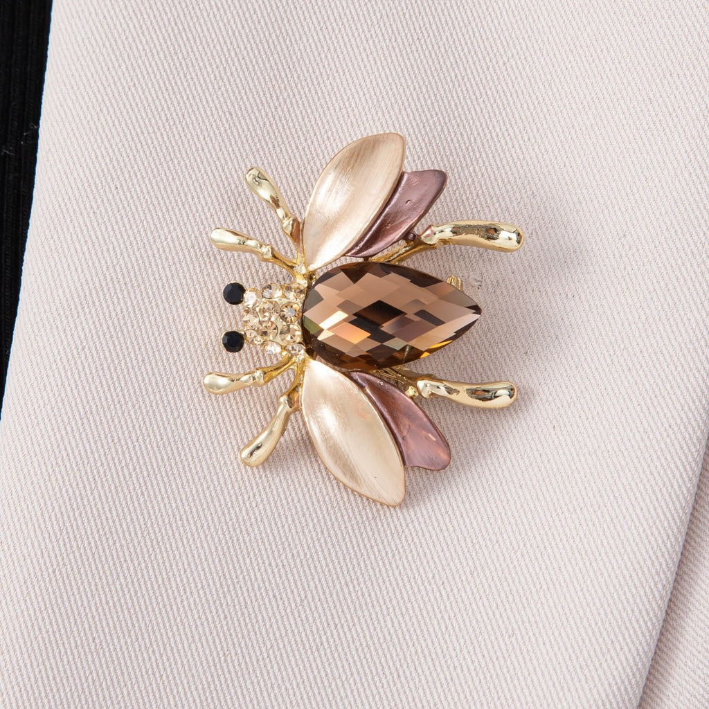 Gold 32mm x 38mm Brown Flying Insect Animal Pin Brooch | BH-102