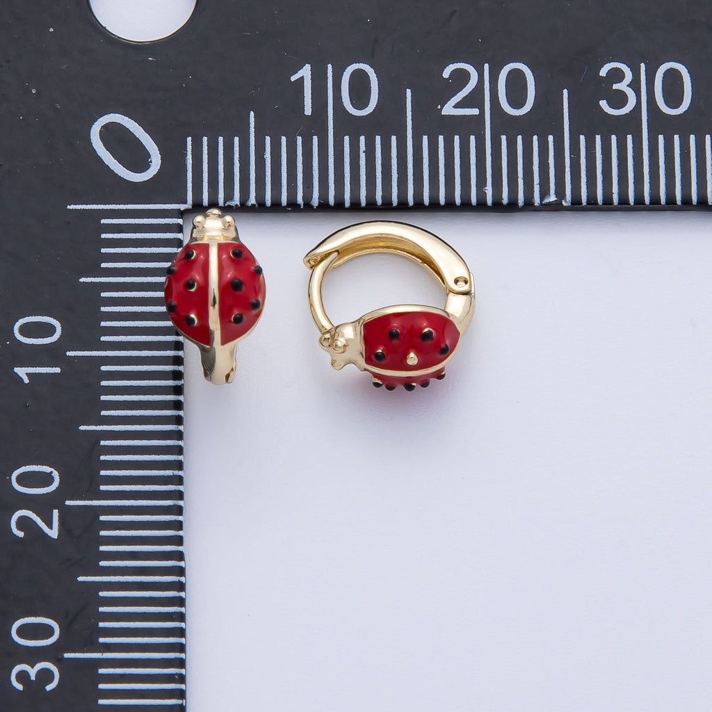 14K Gold Filled 12mm Ladybug Insect Enamel Huggie Earrings | Earrings-00075