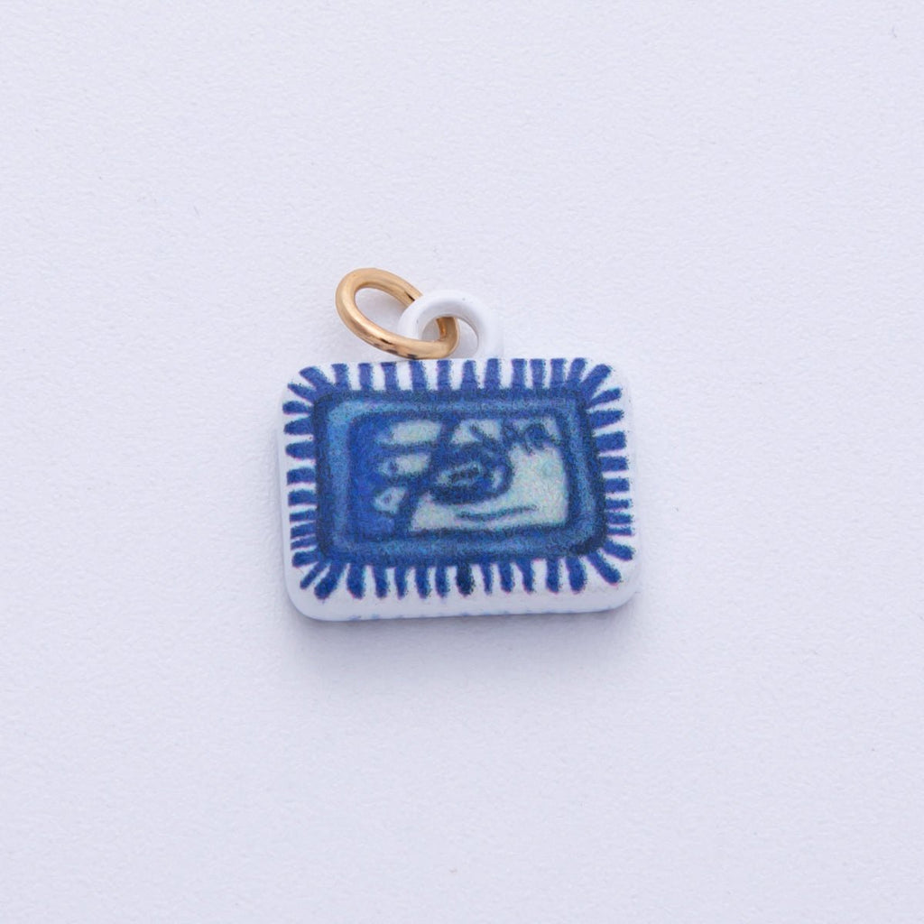 18K Gold Filled 13mm Blue-White Fish Sardine Tin Can Rectangle Charm | AF1610