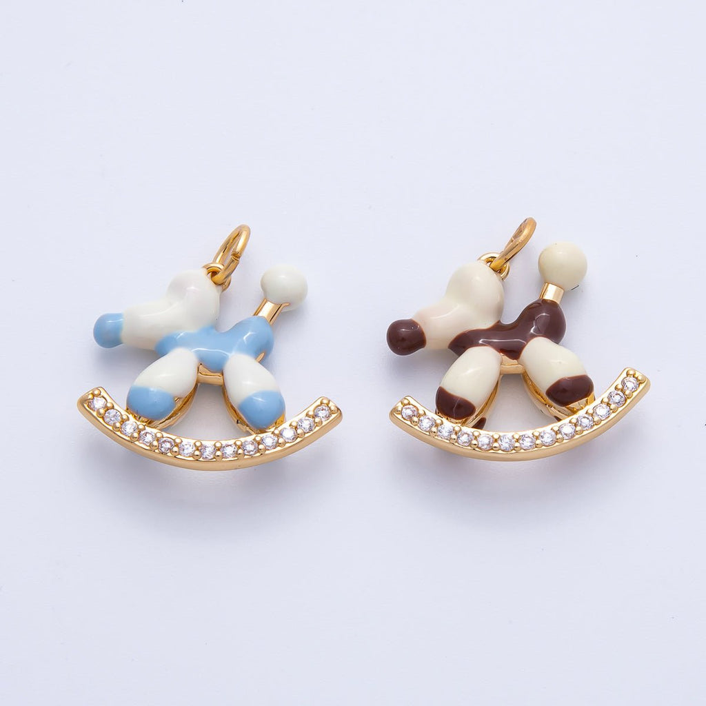 18K Gold Filled 20mm Blue, Brown Enamel Puppy Animal CZ Charm | AK209