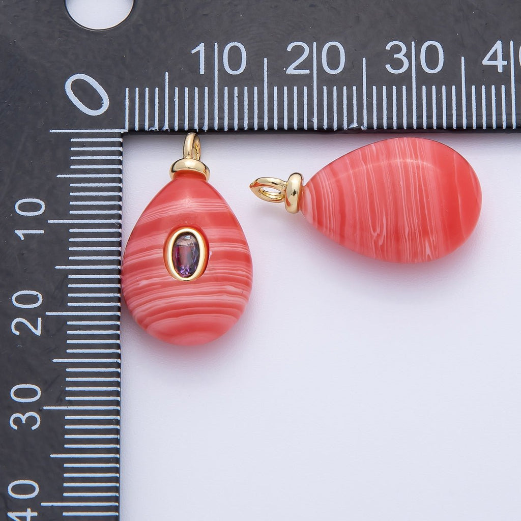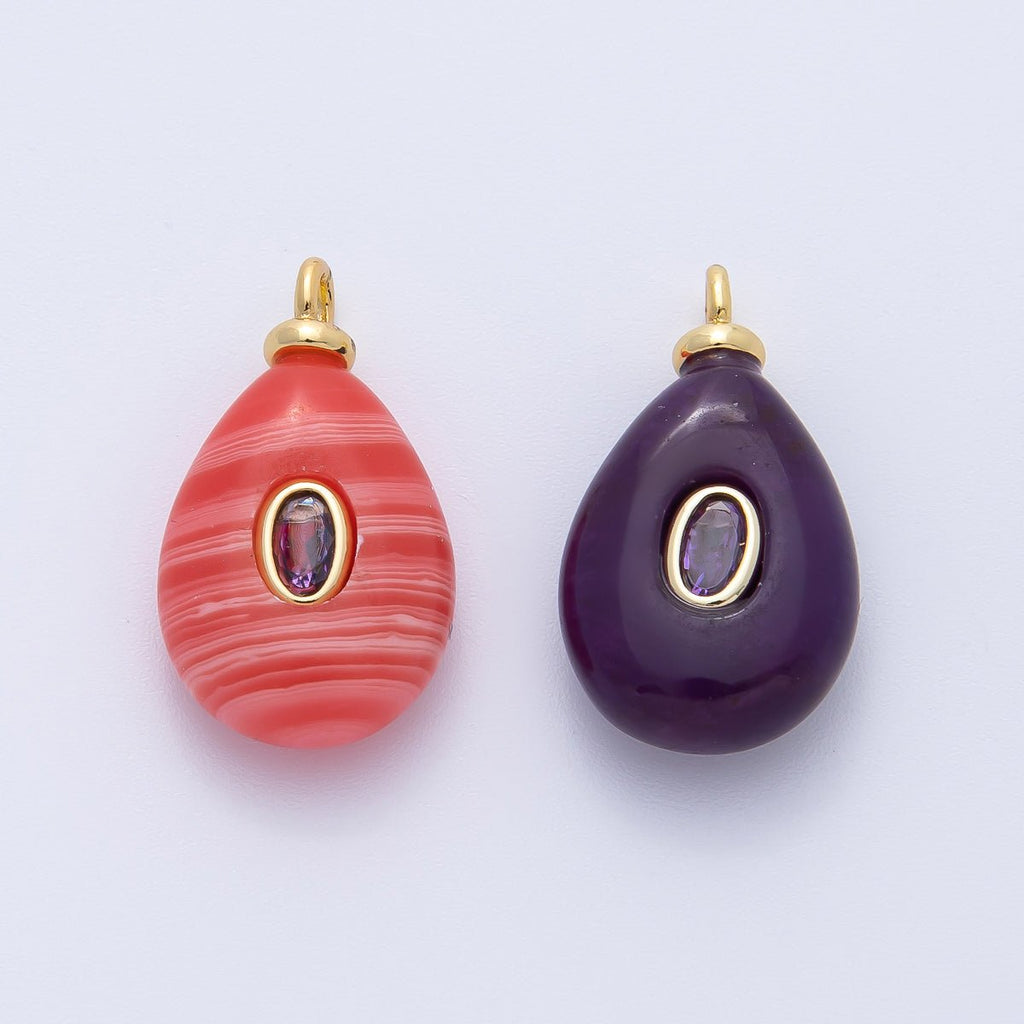 18K Gold Filled Purple Oval CZ Rhodochrosite, Amethyst Teardrop Gemstone Charm | AF1390 AF1391