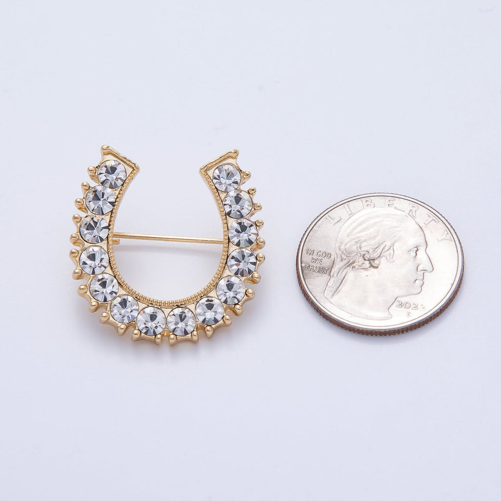 18K Gold Filled 29mm Micro Paved CZ Lucky Horseshoe Brooch Pin | BH-050