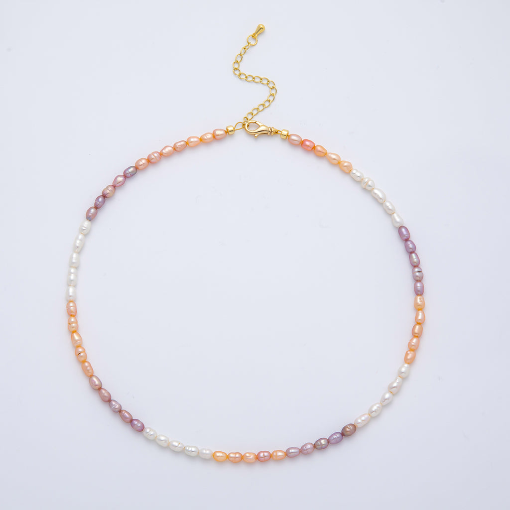 18K Gold Filled 3.8mm White Purple Champagne Peach Gradient Freshwater Pearl 14 Inch Necklace | WA-3836