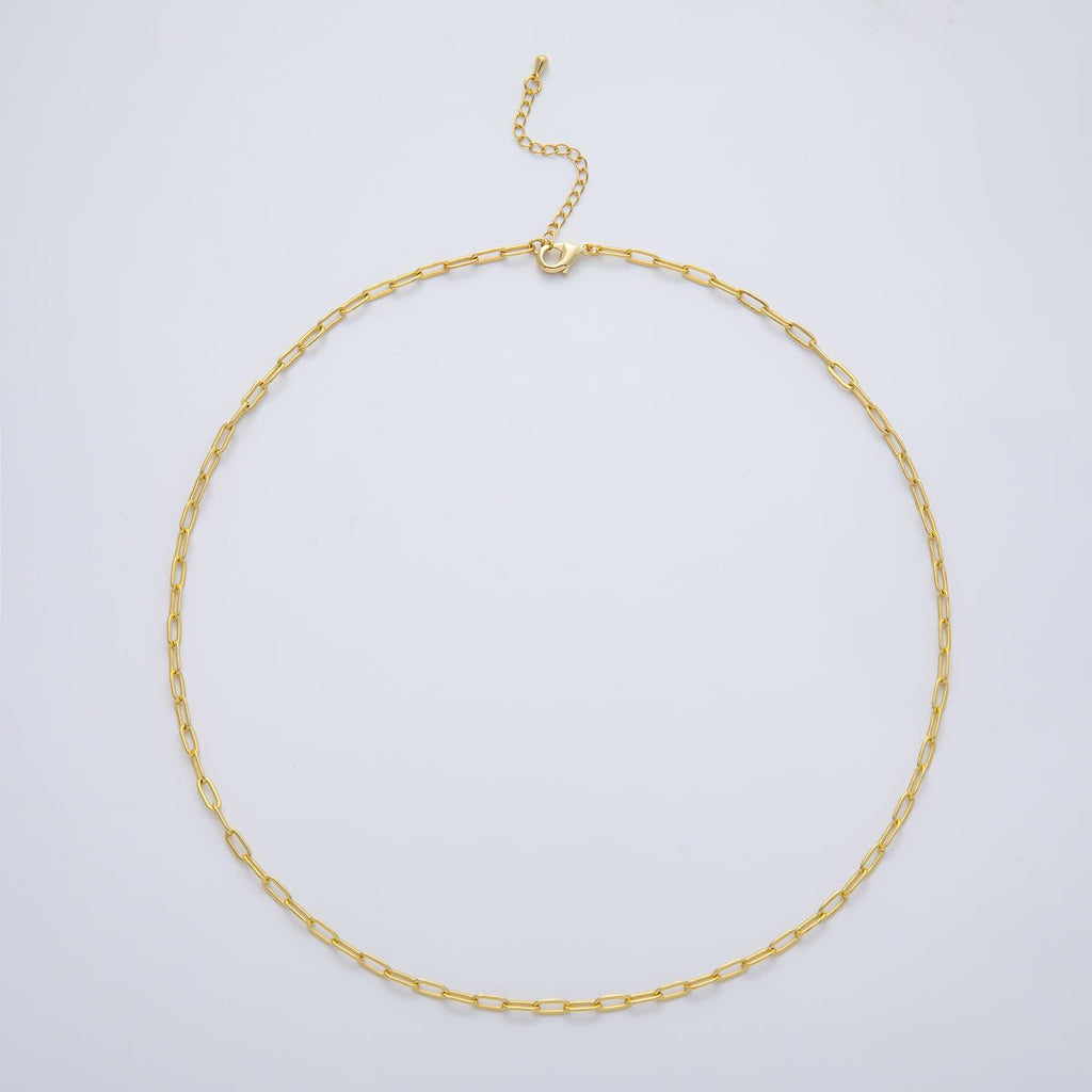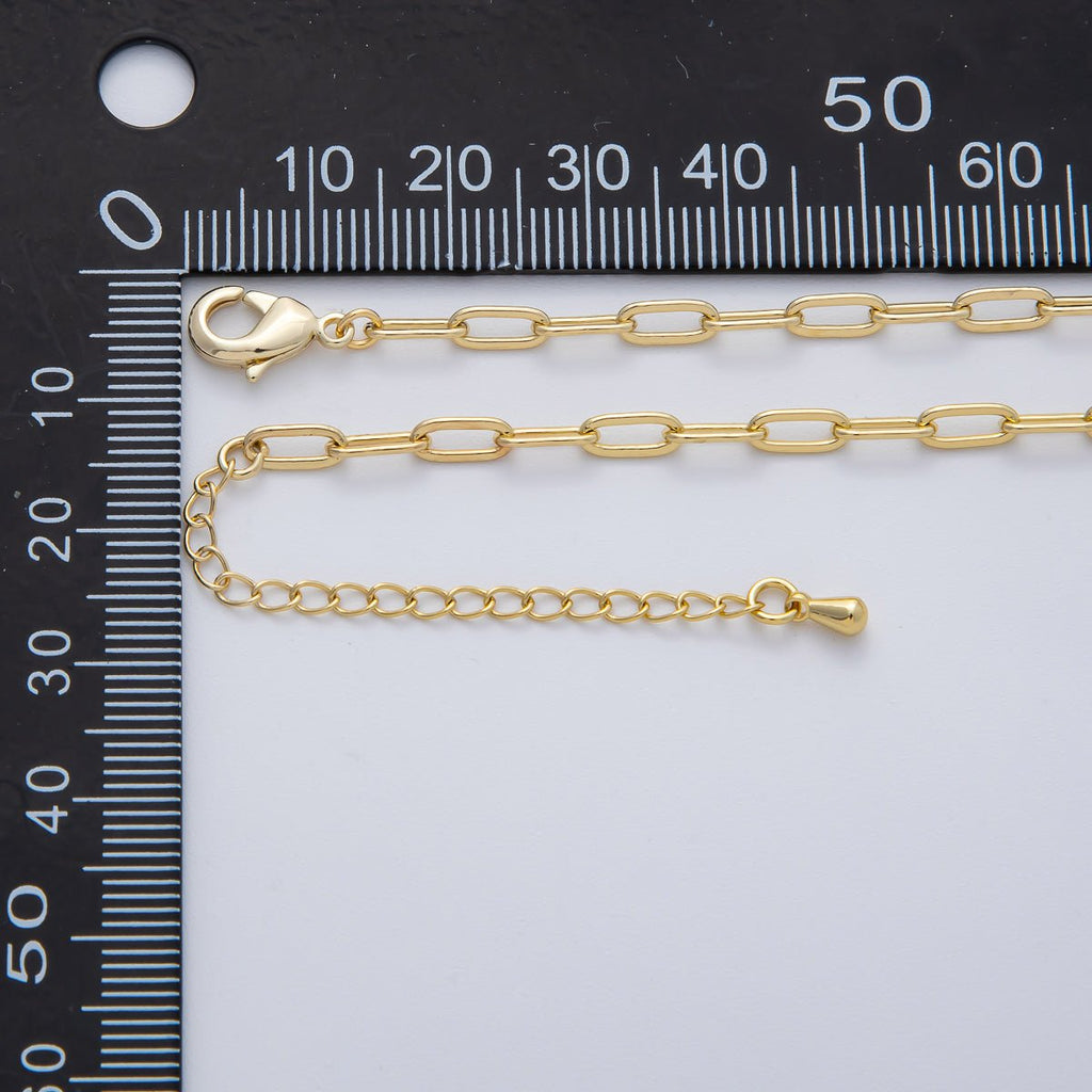 18K Gold Filled 3mm Mini Paperclip Chain 19 Inch Necklace w. Extender | WA-1189