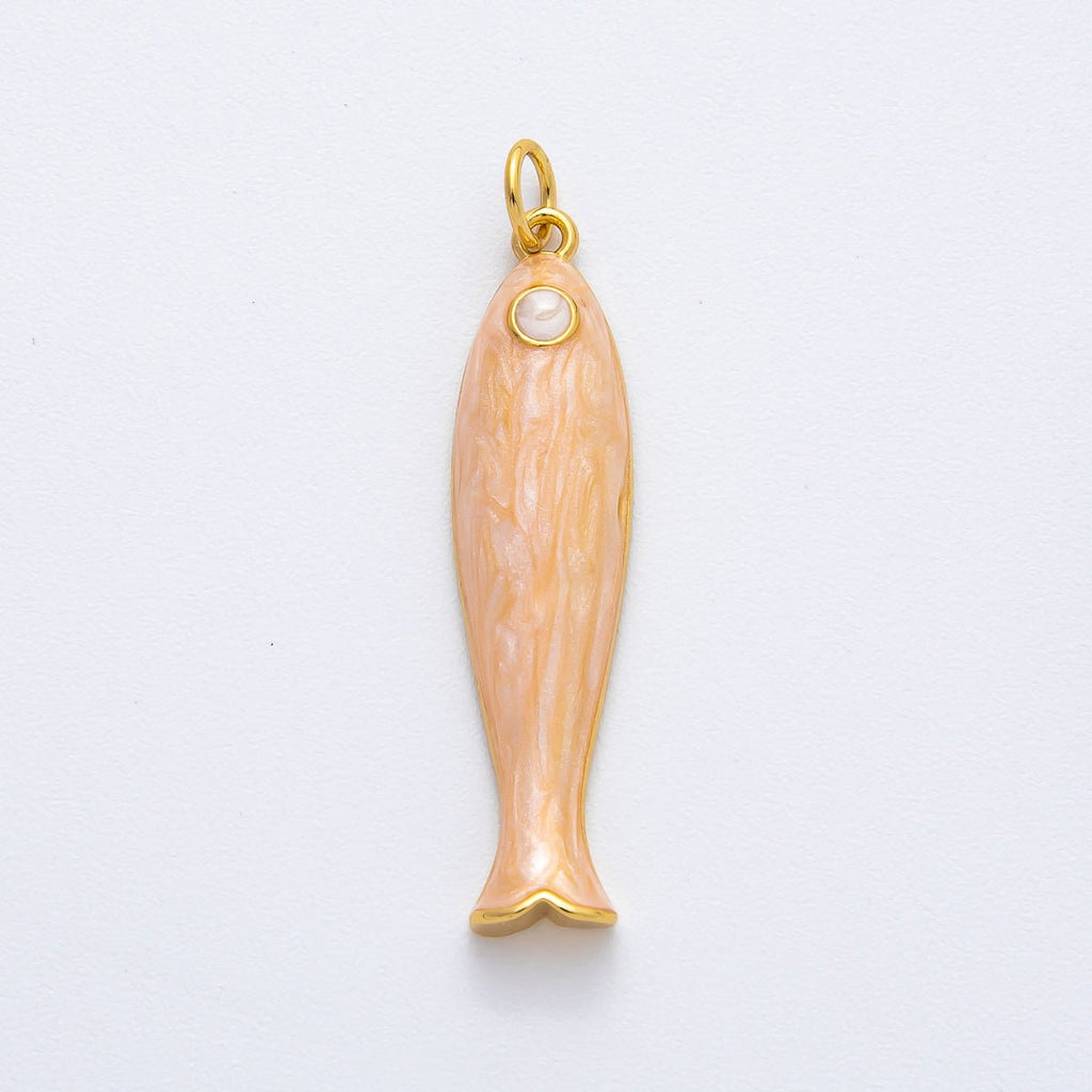 18K Gold Filled 38mm Blue, Champagne Enamel Fish Sardine Charm | AF1309