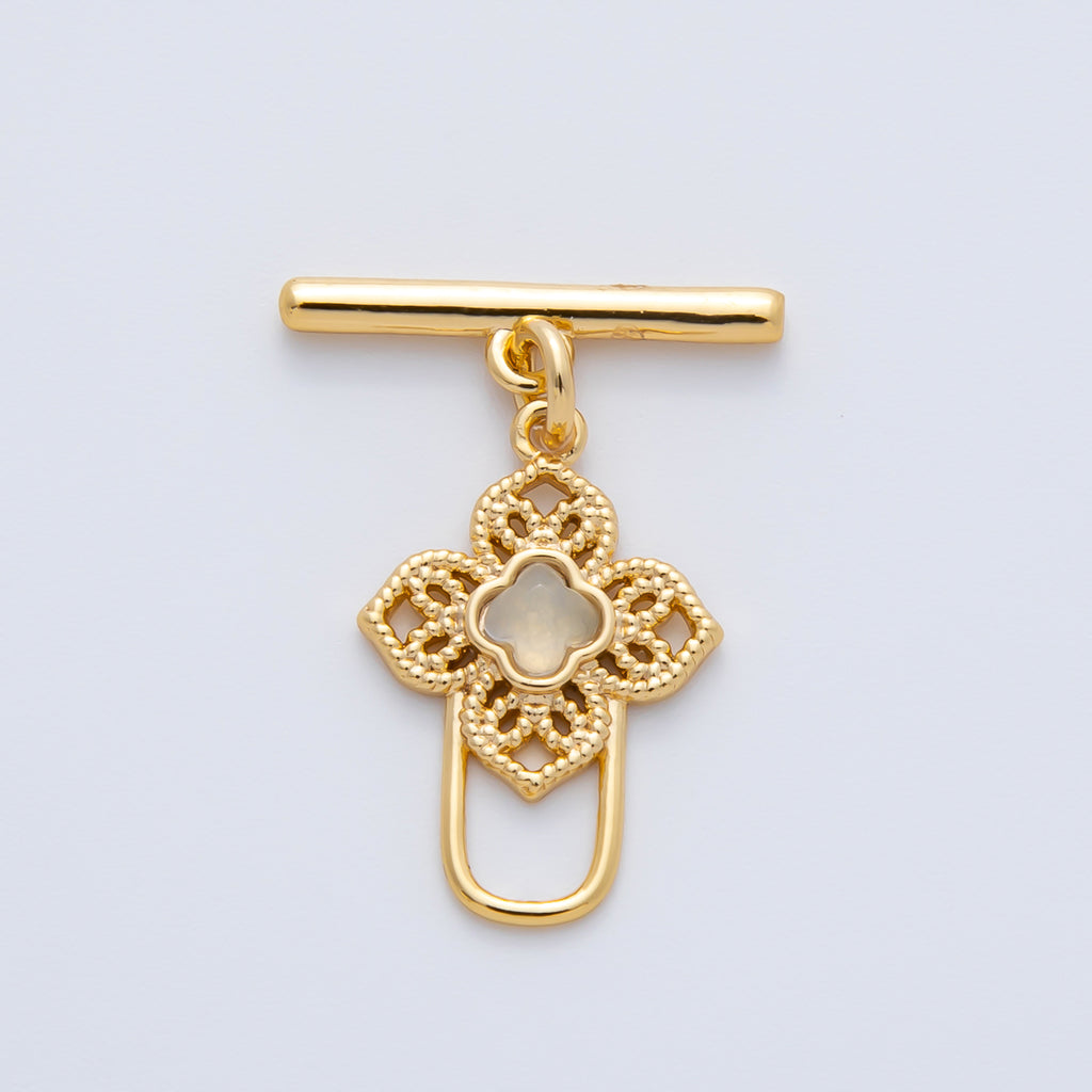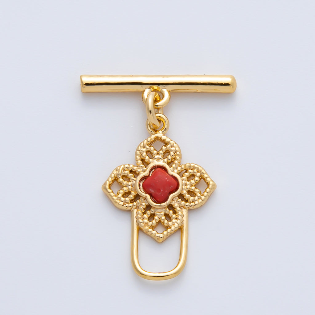 18K Gold Filled Blue, Red, White CZ Clover OT Clasp Dainty Toggle Clasps Closure Finding | Z1458 Z1459