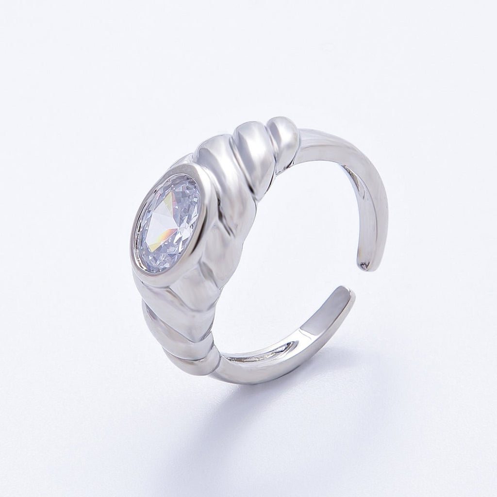 18K Gold Filled Clear CZ Oval Croissant Ring in Gold & Silver | Rings-00036