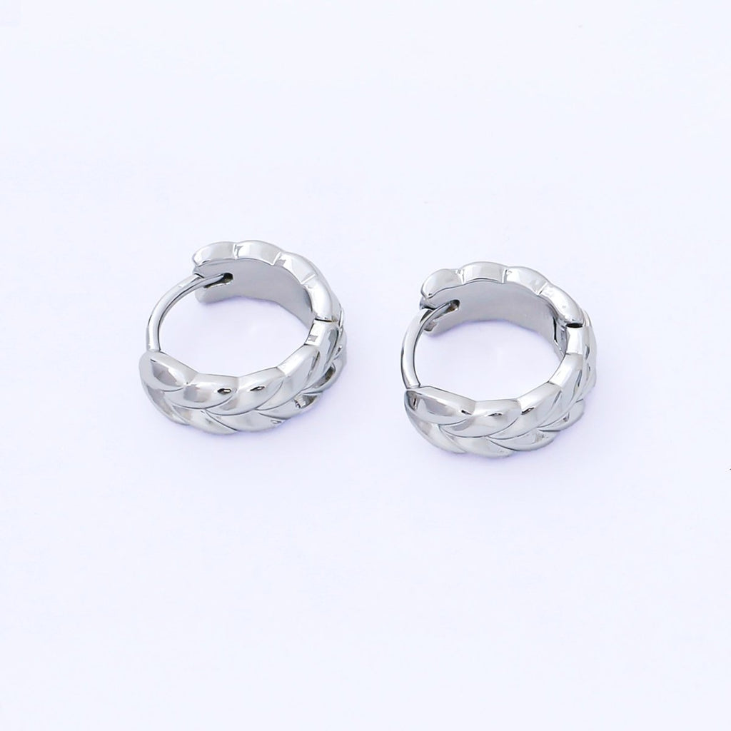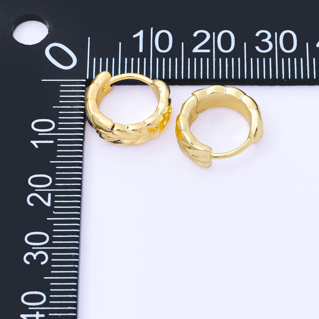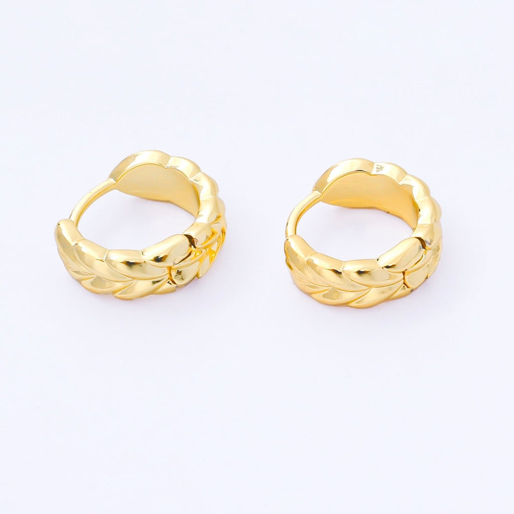 24K Gold Filled 12.5mm Rome Leaves Pattern Huggie Earrings in Gold & Silver | AB1615 AB1616