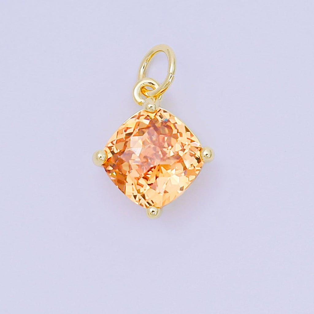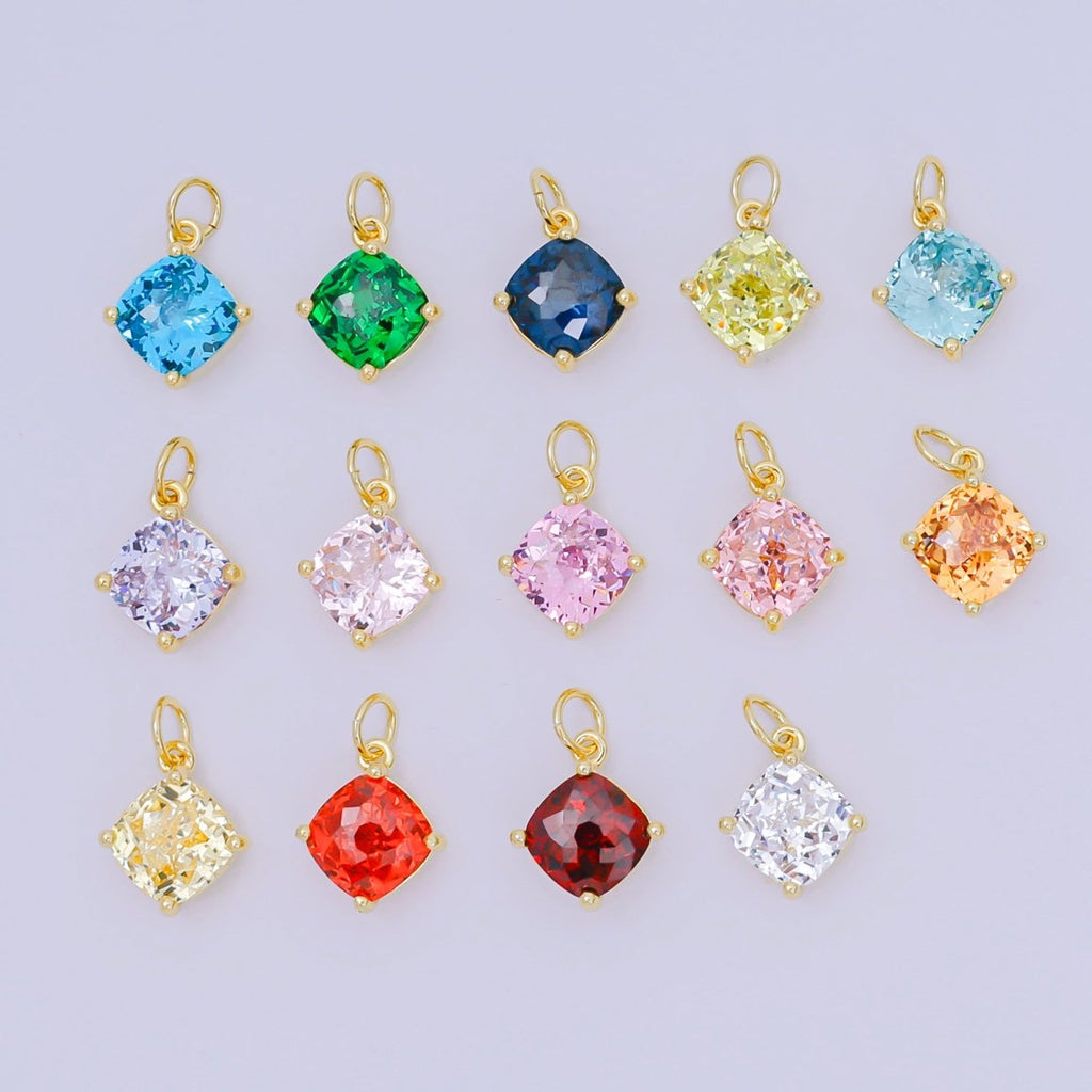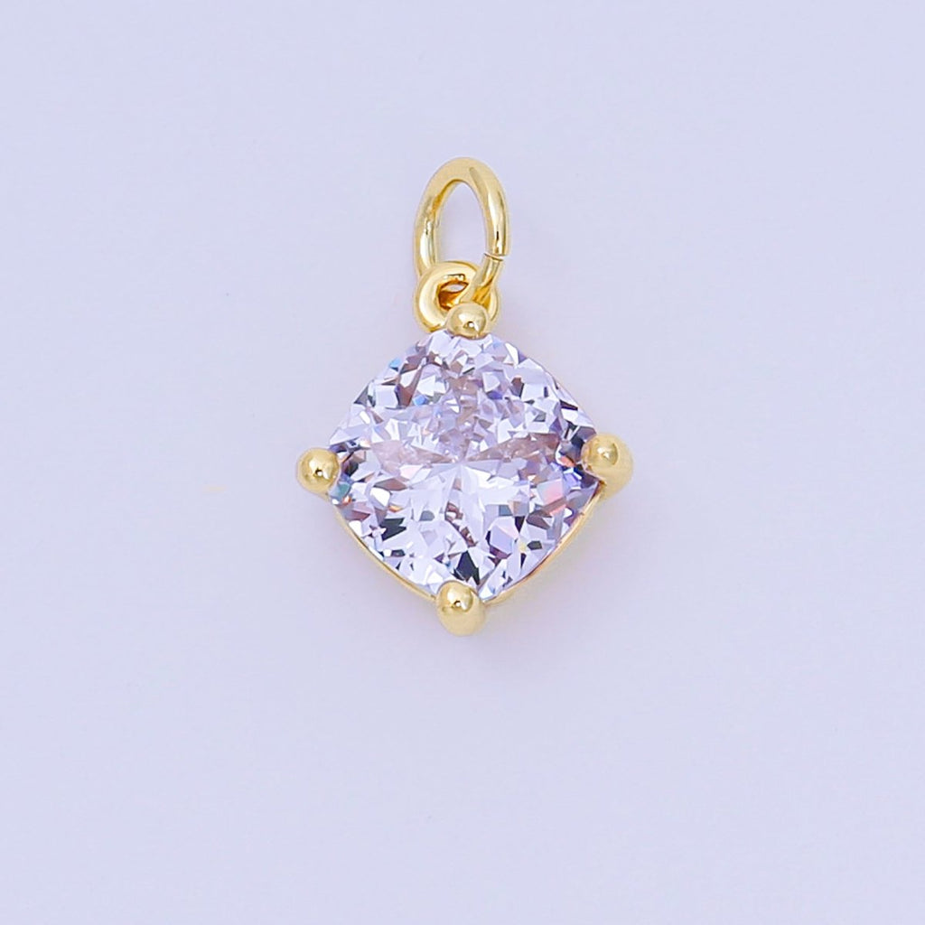 24K Gold Filled 13mm Rhombus Multicolor Birthstone CZ Charm in Gold | AC-1561 - AC-1567