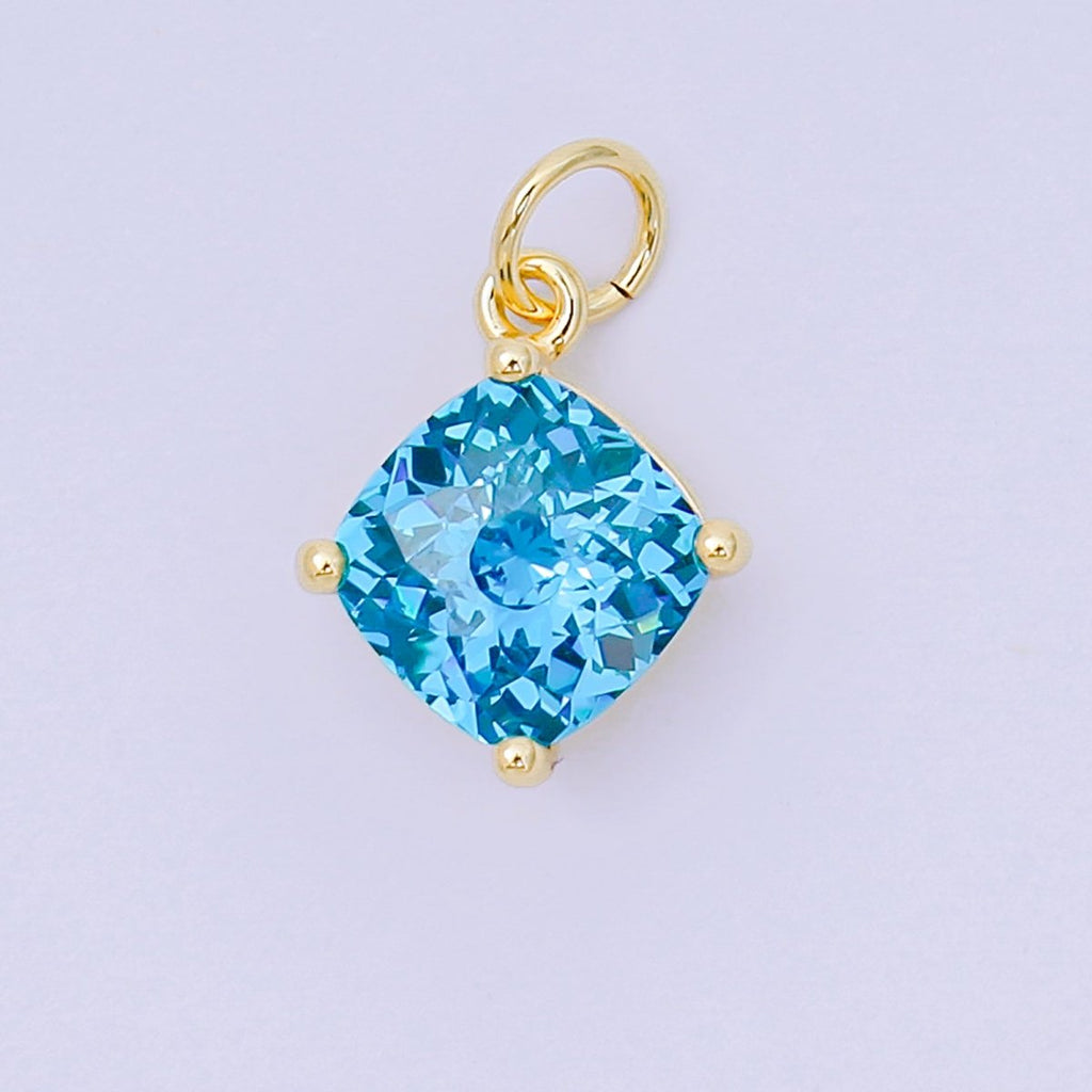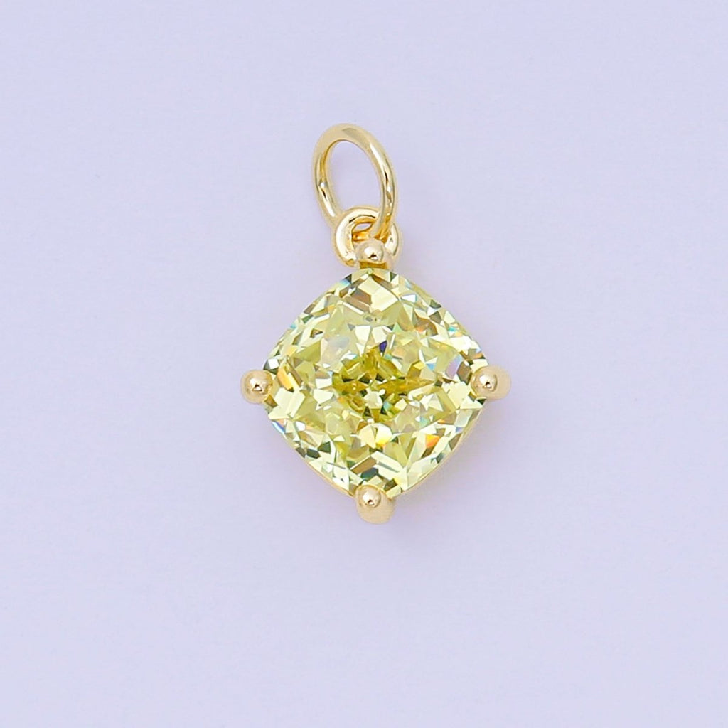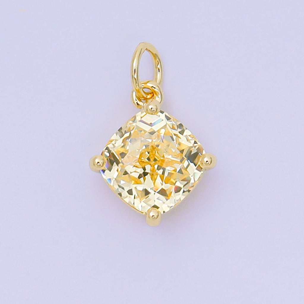 24K Gold Filled 13mm Rhombus Multicolor Birthstone CZ Charm in Gold | AC-1561 - AC-1567