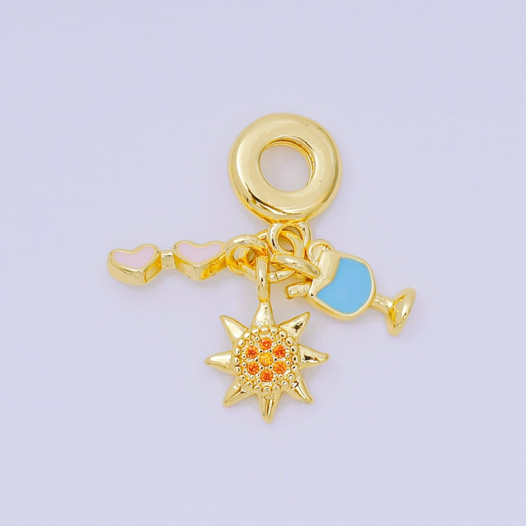 24K Gold Filled 14mm Orange Micro Paved CZ Enamel Art Summer Holiday Set Charm in Glasses, Drink, & Sun Rhondelle Drop Pendant | D-893