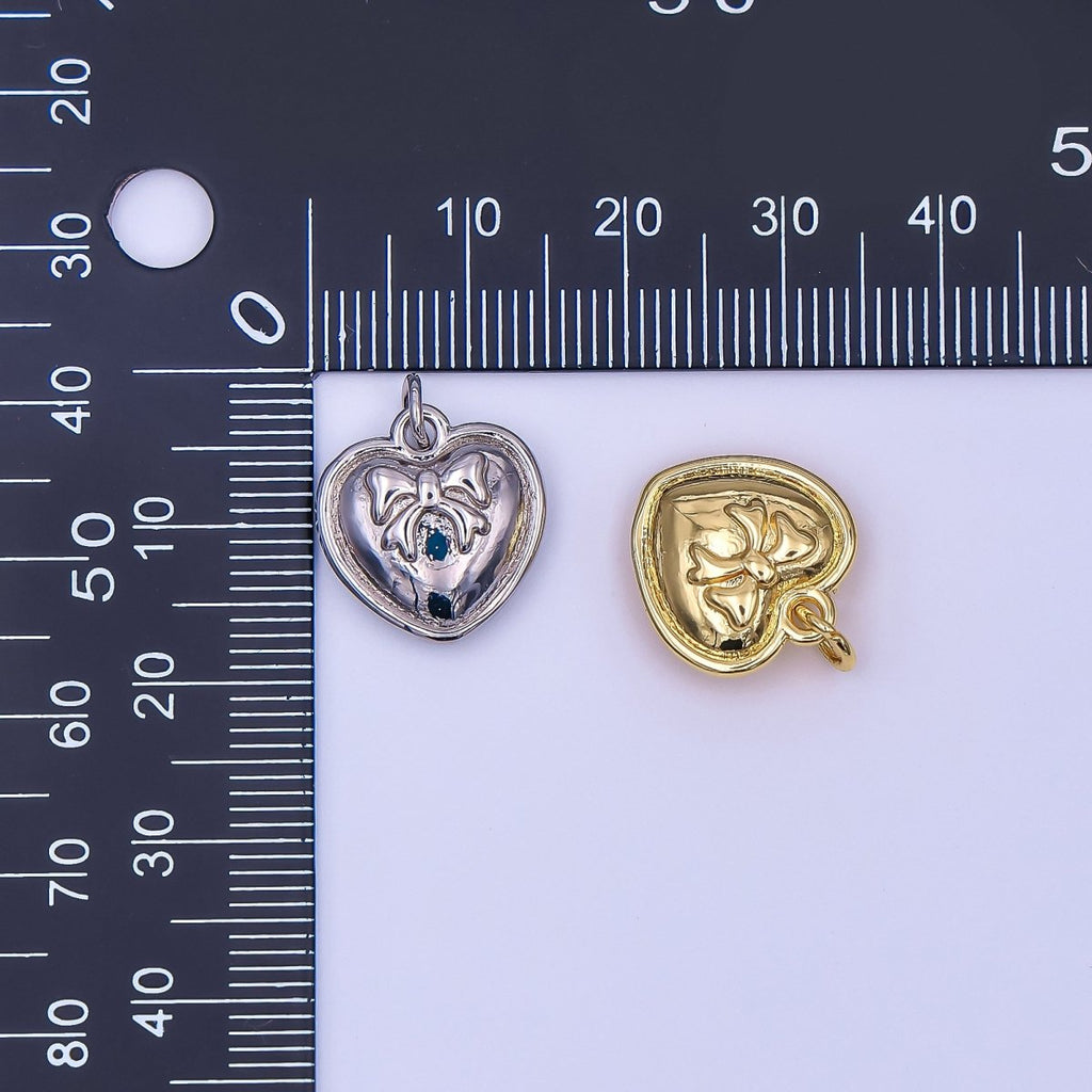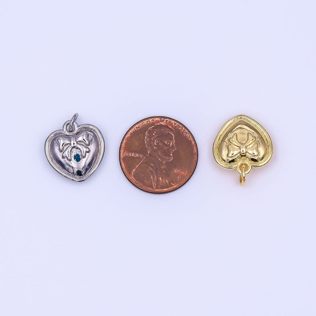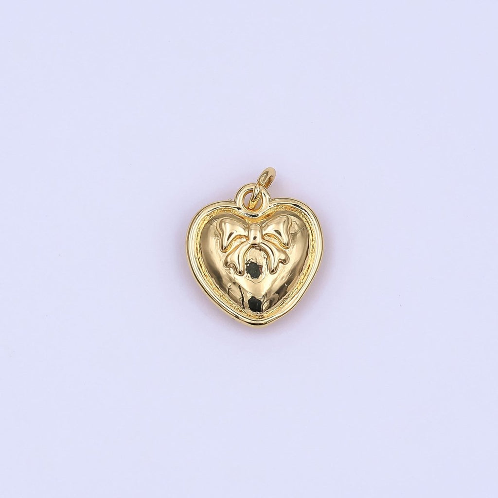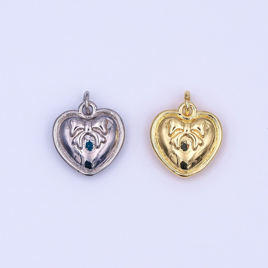 24K Gold Filled 15mm Wrapped in Love Ribbon Bow Heart Charm in Gold & Silver | AF488