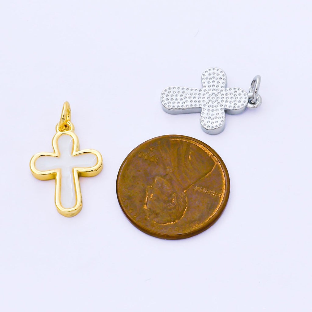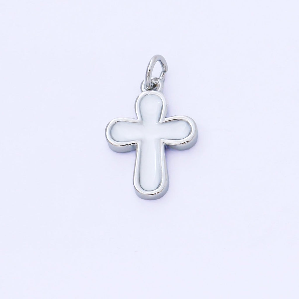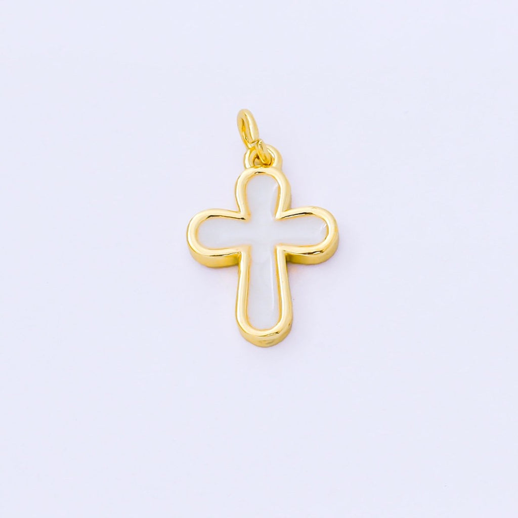 24K Gold Filled 16mm White Enamel Cross Holy Christian Catholic Charm in Gold & Silver | AF1518
