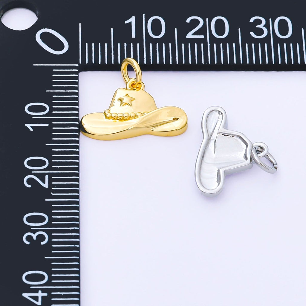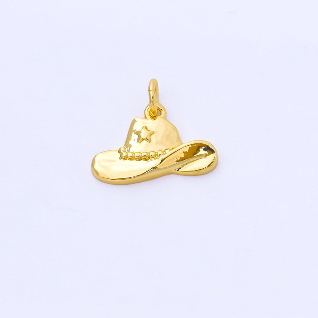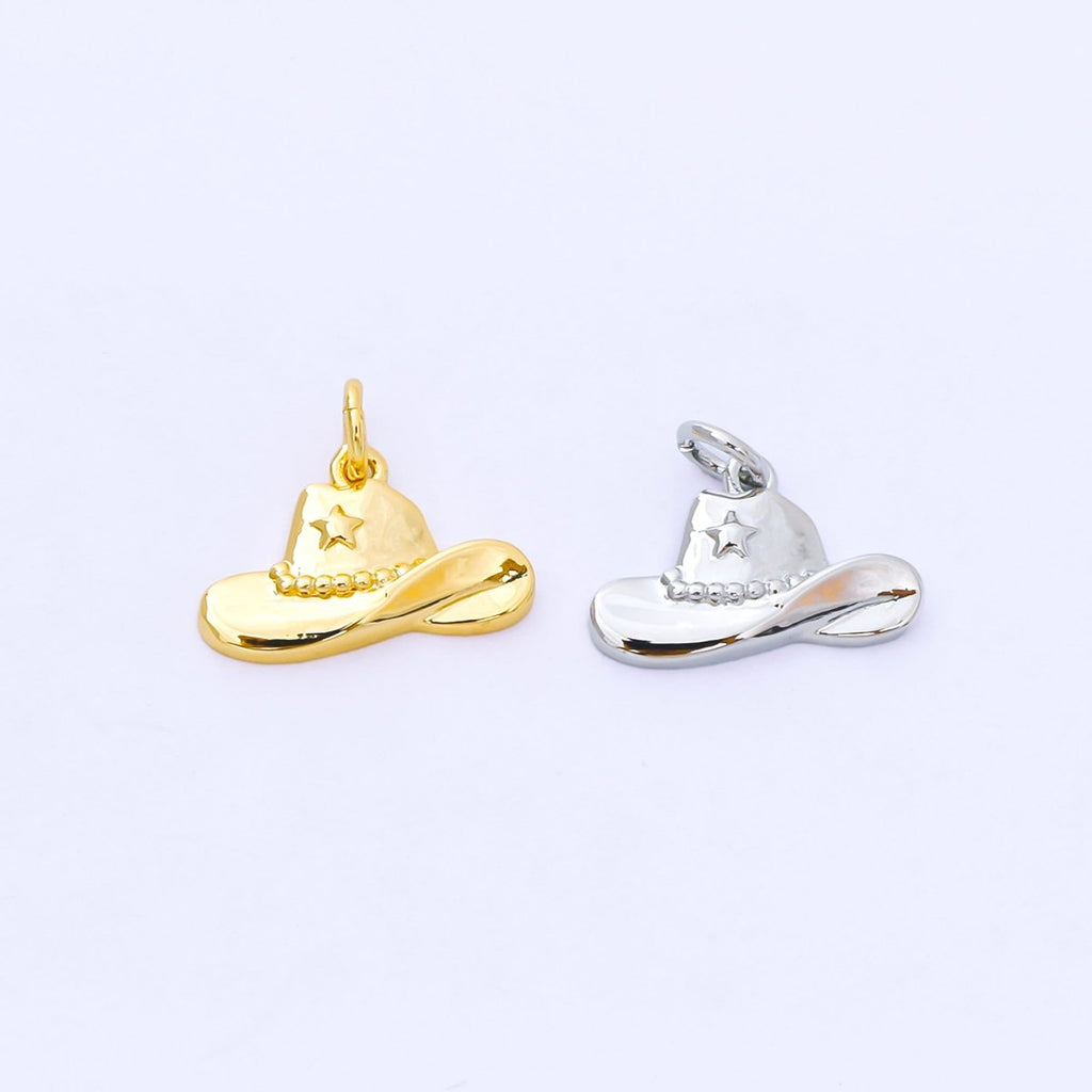 24K Gold Filled 16mm Star Cowboy Hat Charm in Gold & Silver | AF1519