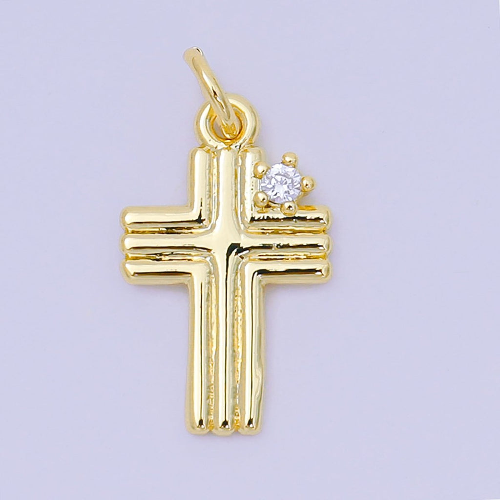 24K Gold Filled 17mm Round Clear CZ Groovy Holy Cross Christian Charm | AH-639