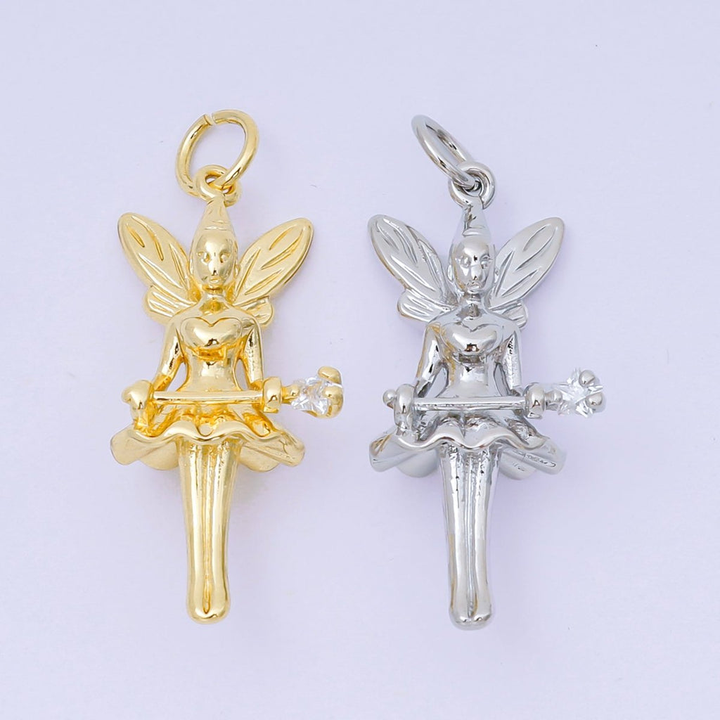 24K Gold Filled 29mm Star-Shaped CZ Little Fairy Angel Wing Charm in Gold & Silver | AC-1582
