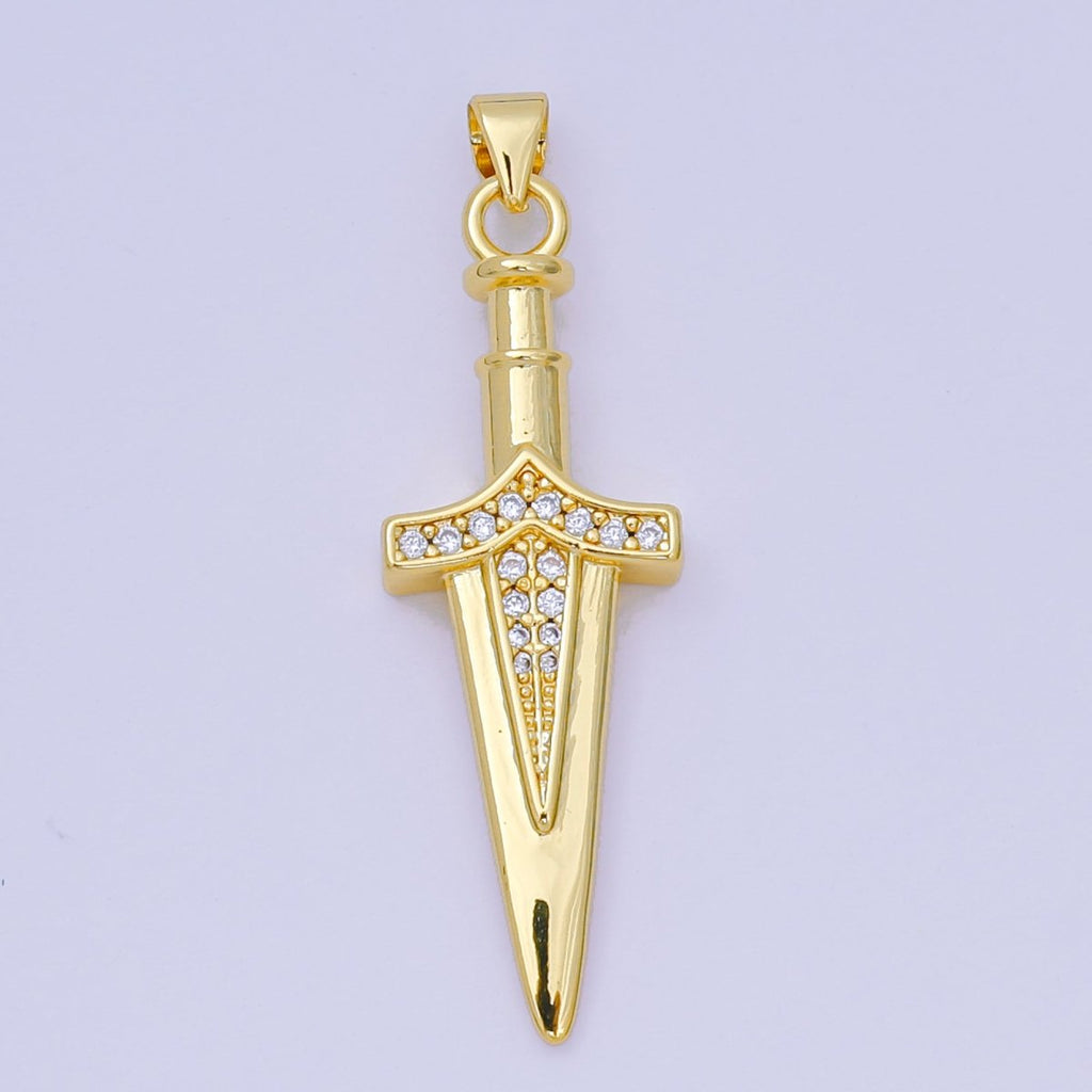 24K Gold Filled 39mm Micro Paved CZ Small Dagger Knife Pendant | AA1602