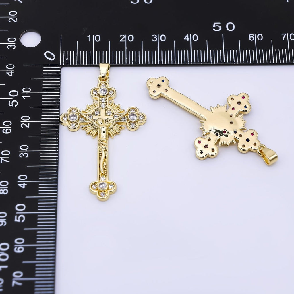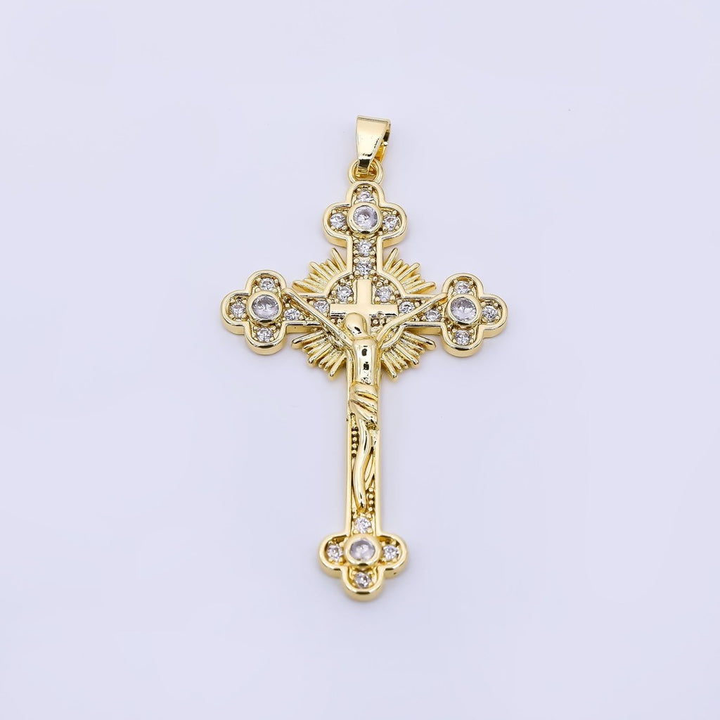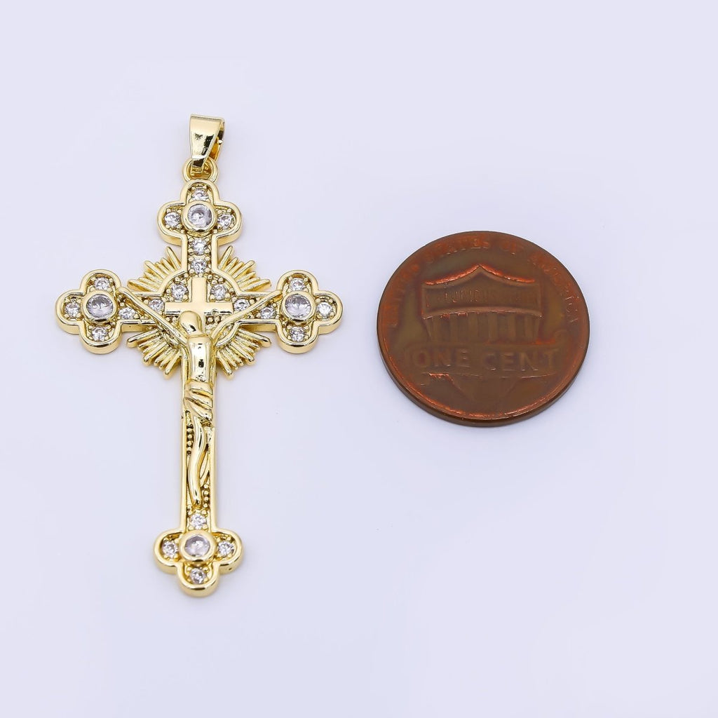 24K Gold Filled 42.5mm Micro Paved CZ Cross Crucifix Charm | AA-1569