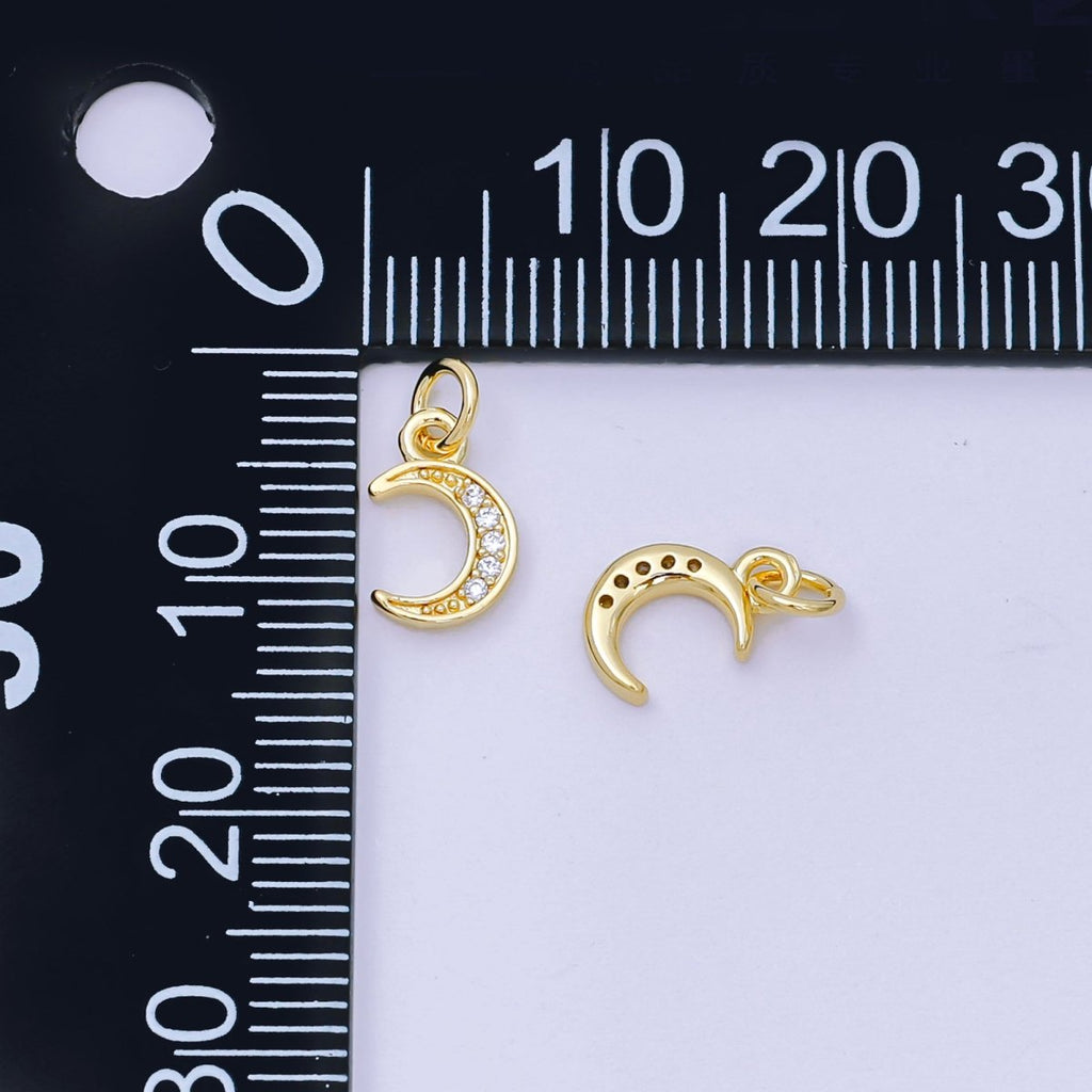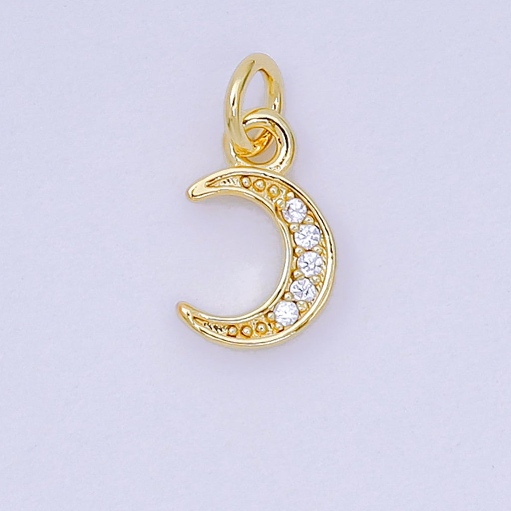 24K Gold Filled 9.5mm Micro Paved CZ Celestial Crescent Moon Charm | D103