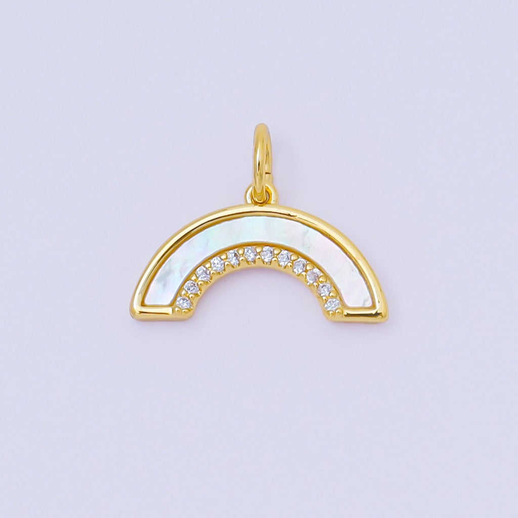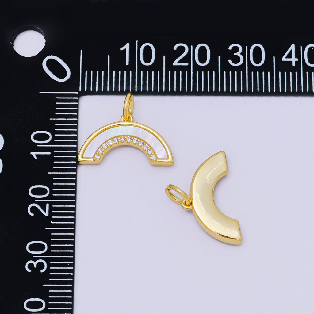 24K Gold Filled 9mm Shell Pearl Micro Paved CZ Rainbow Curved Charm | AC1587