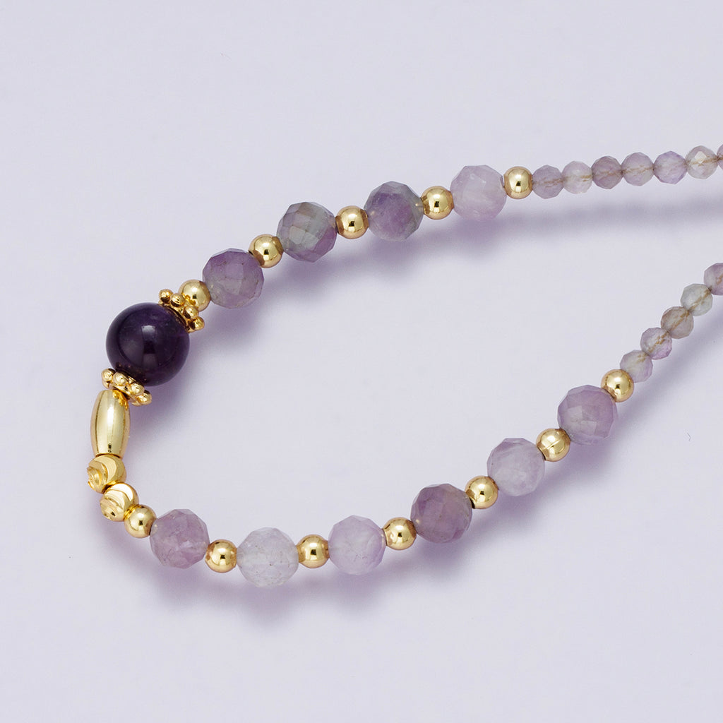 24K Gold Filled Amethyst Multifaceted Gemstone Ball Figaro Chain Half 18 Inch Necklace w. Extender | WA-04231