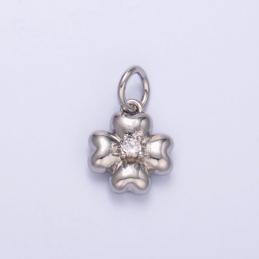 24K Gold Filled Clear CZ Chubby Flower Multidimensional 3D Charm in Gold & Silver | N018