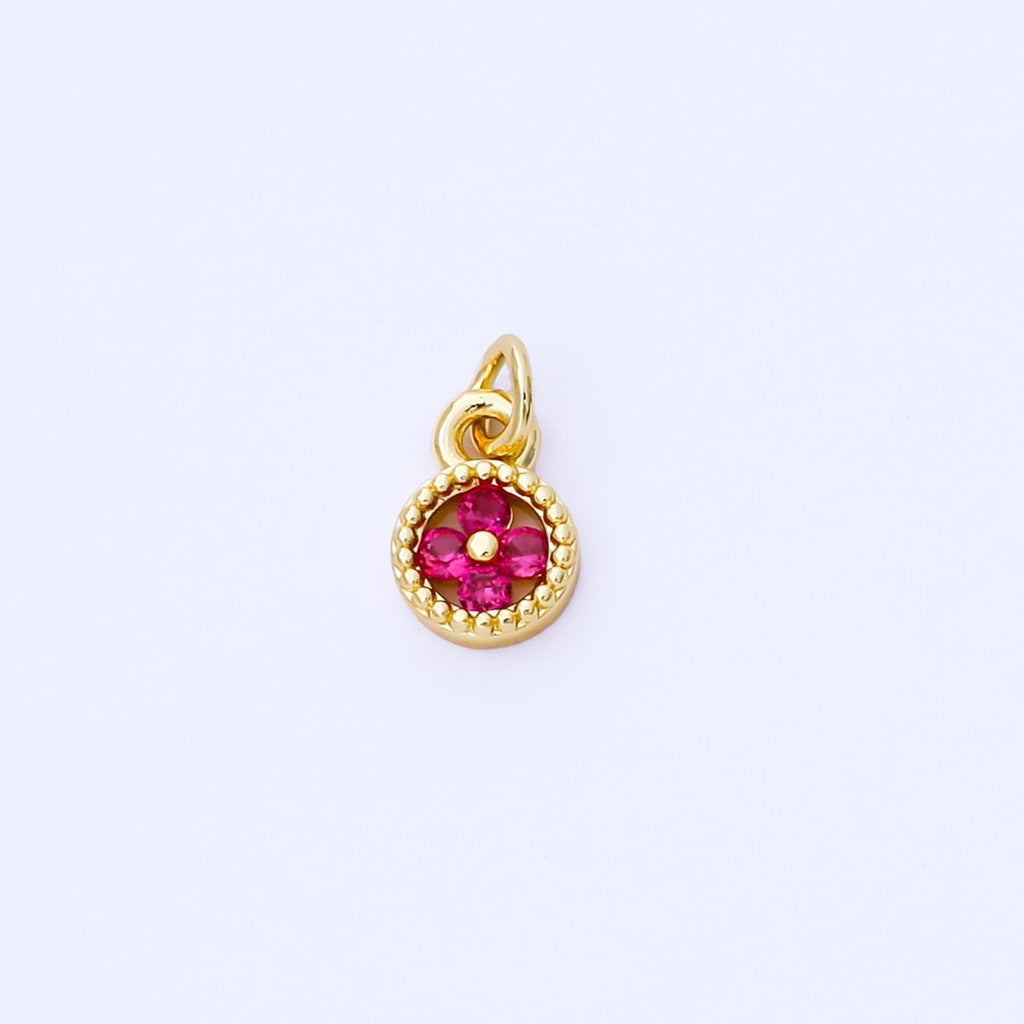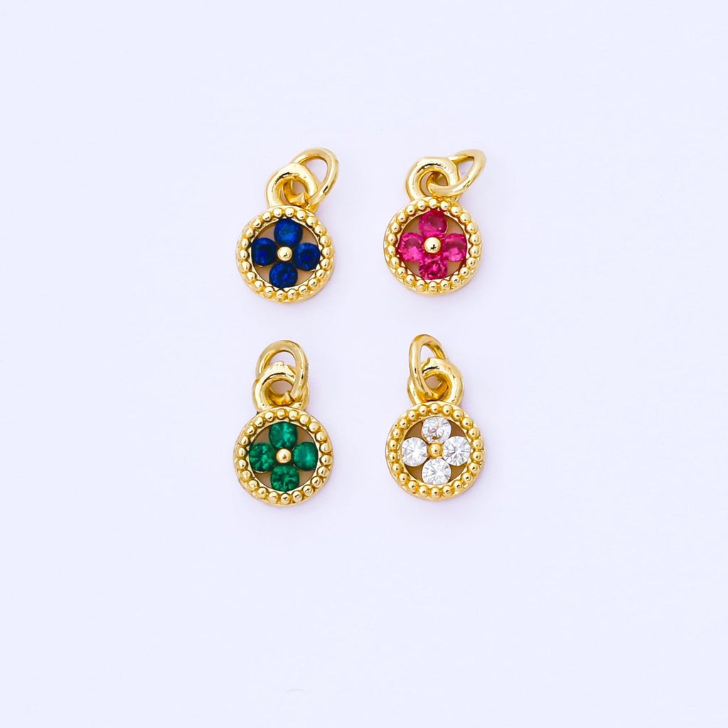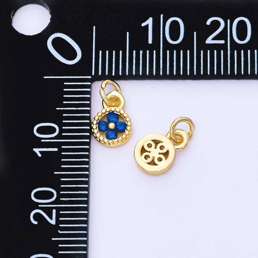 24K Gold Filled 9mm Green, Blue, Fuchsia CZ Clover Flower Dotted Round Charm | AF1500 AF1501