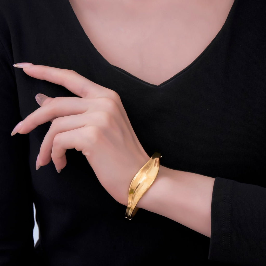 24K Gold Filled Hammered Droplet Bangle Cuff Bracelet | WA-3325