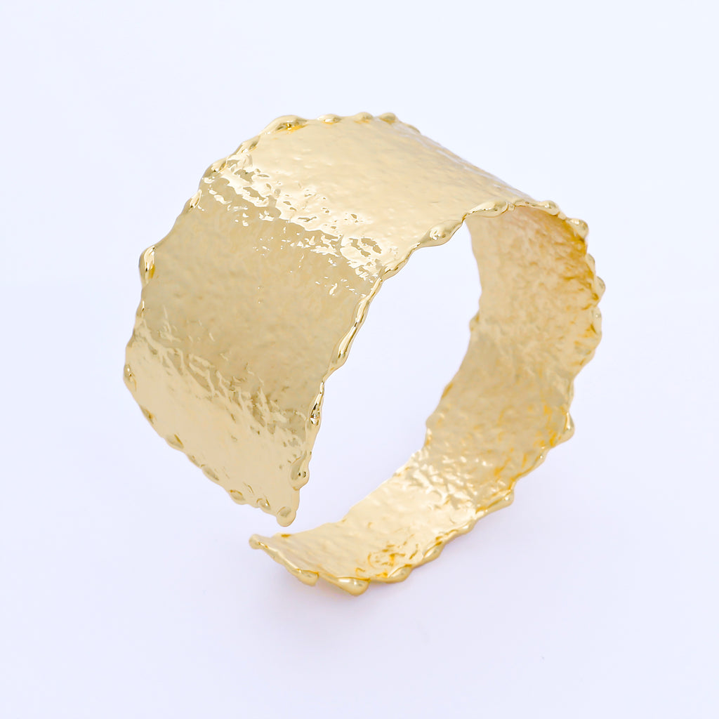 24K Gold Filled Wide Hammered Molten Geometric Cuff Bracelet | WA-3235