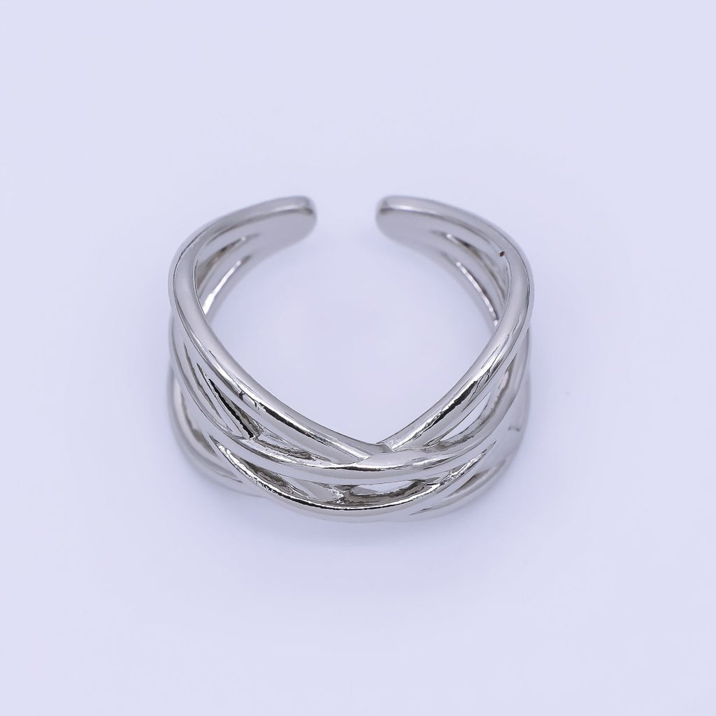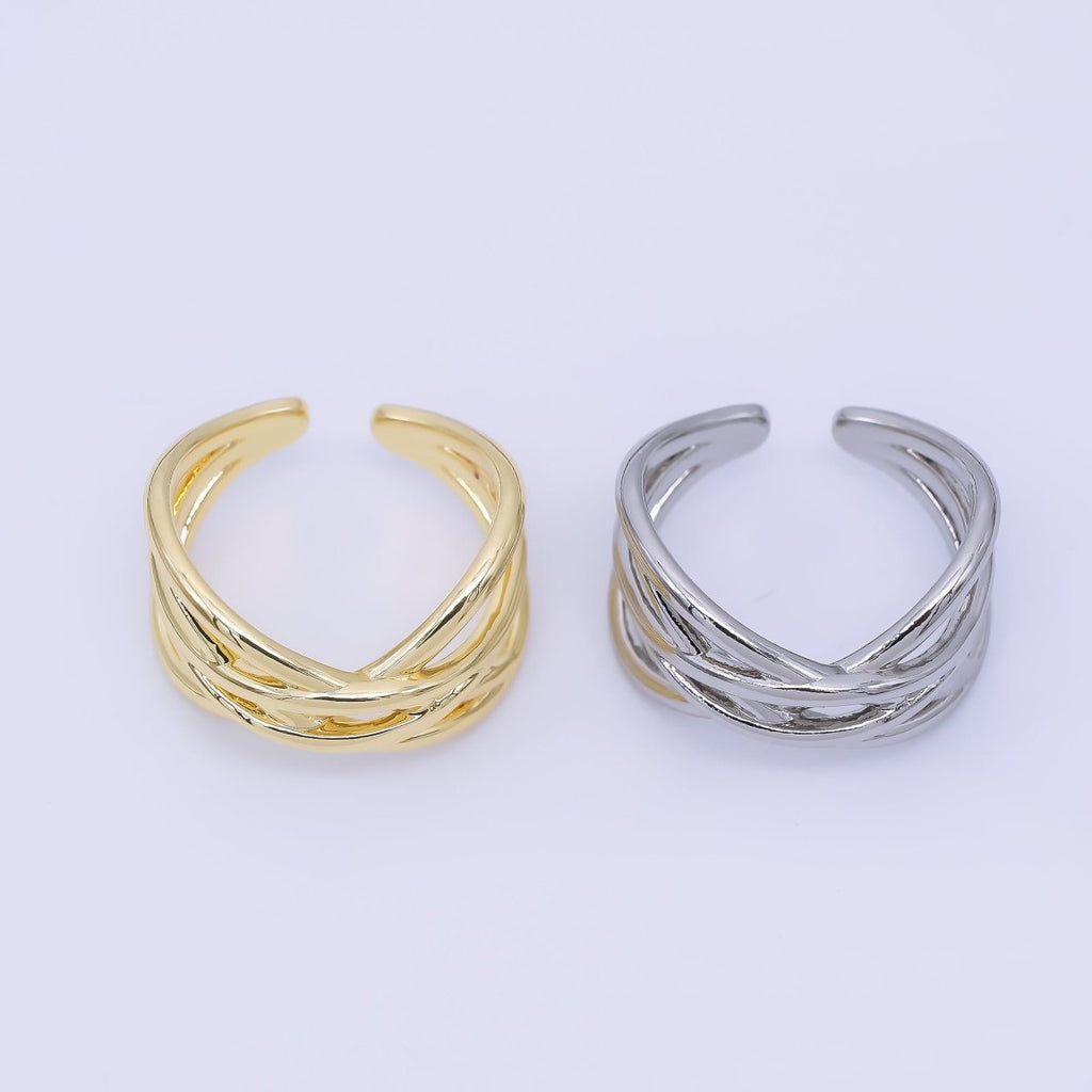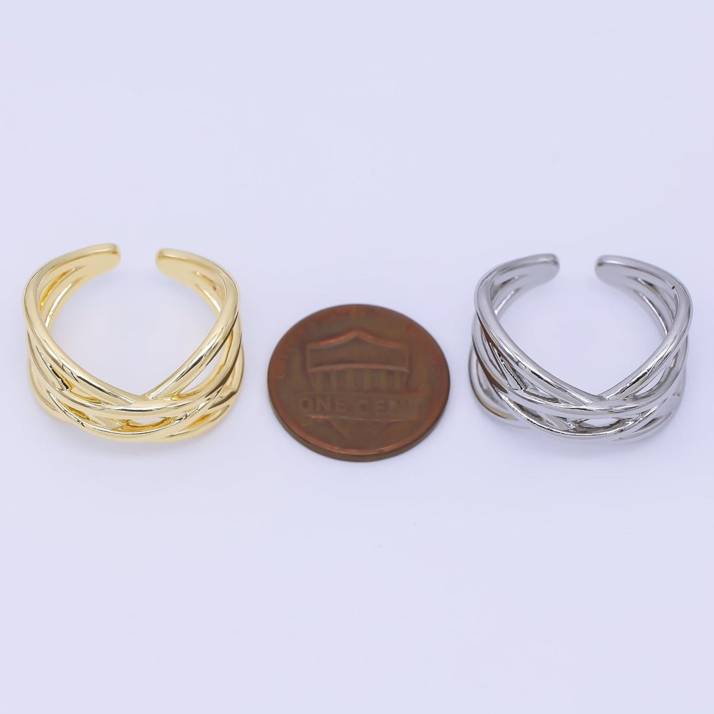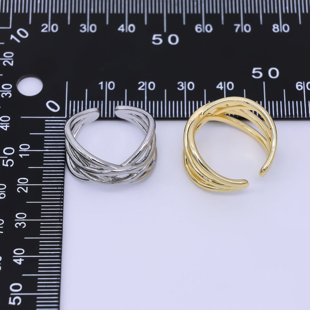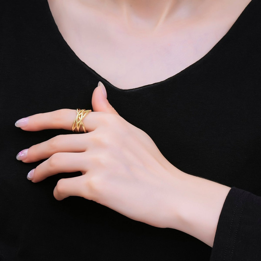 24K Gold Filled Intertwined Lines Crossing Twist Ring in Gold & Silver | O1628 O1631