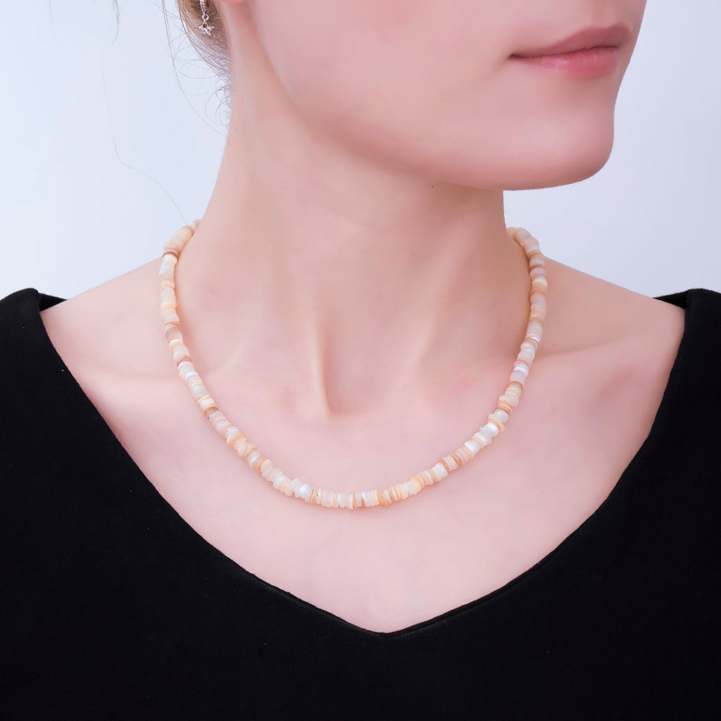 24K Gold Filled Irregular Natural Brown Shell Chip Beads Pearl Gemstone 15.75 Inch Handmade Necklace | WA-3247