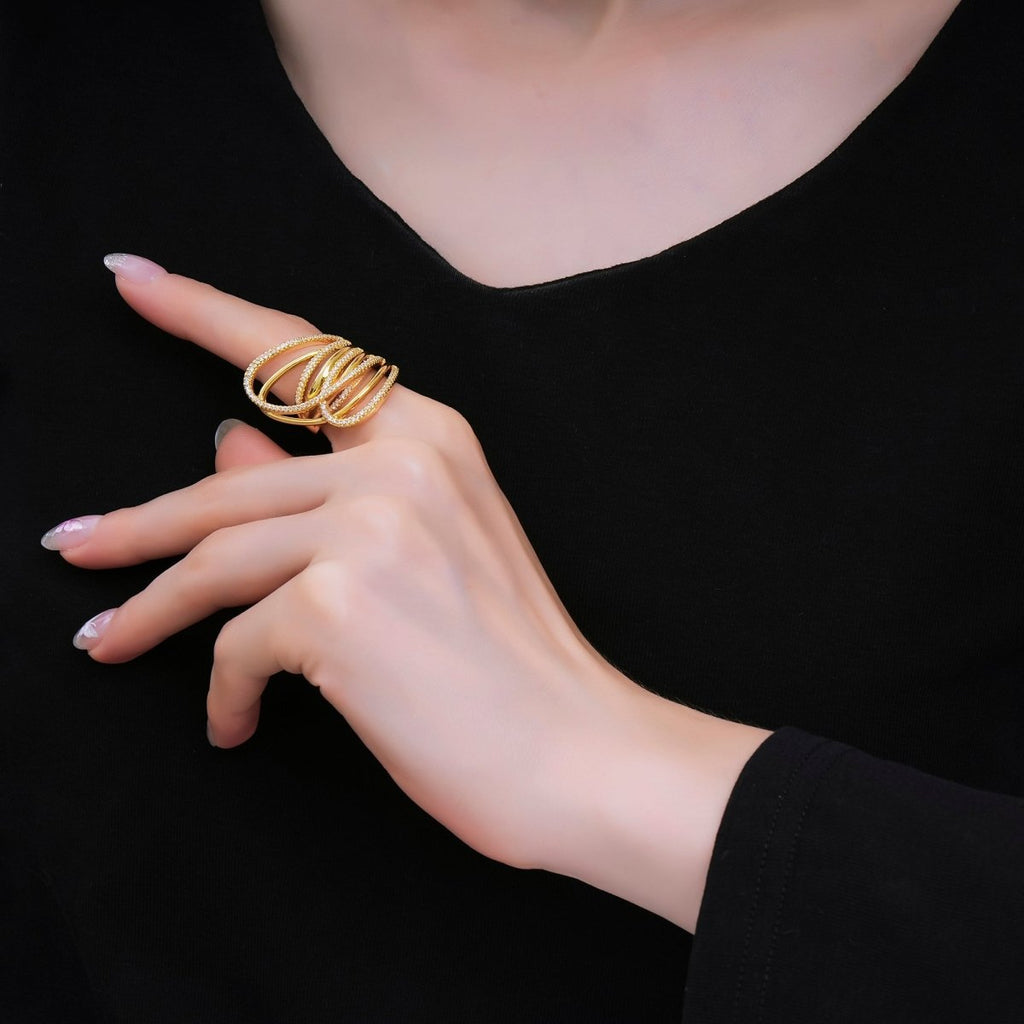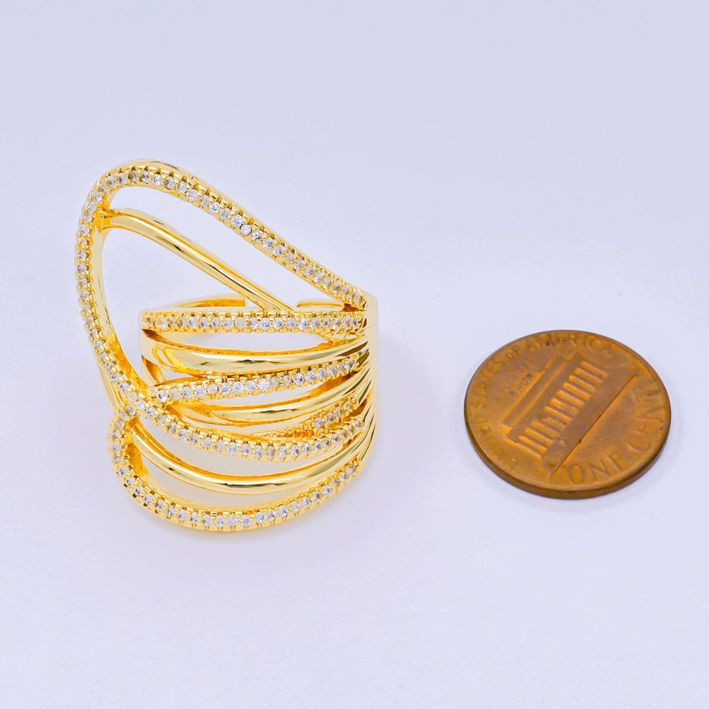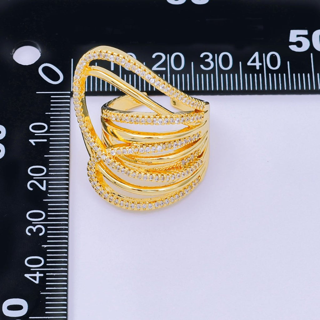 24K Gold Filled Micro Paved CZ Cascade Stackable Wave Adjustable Ring | O-1477