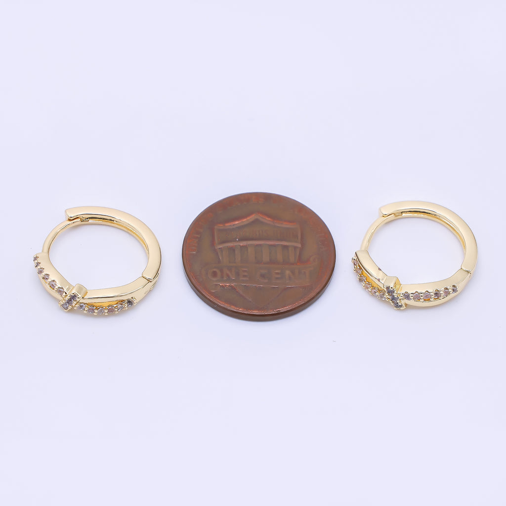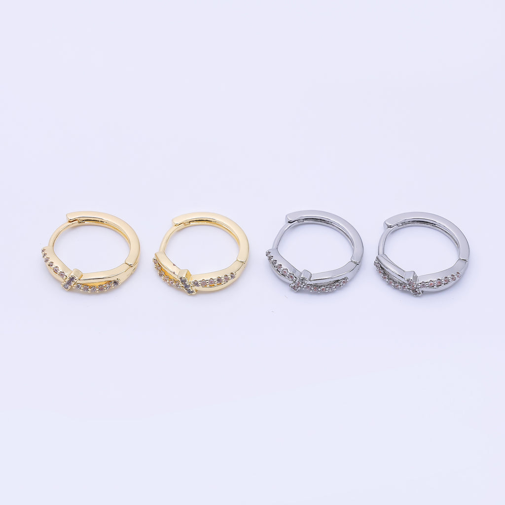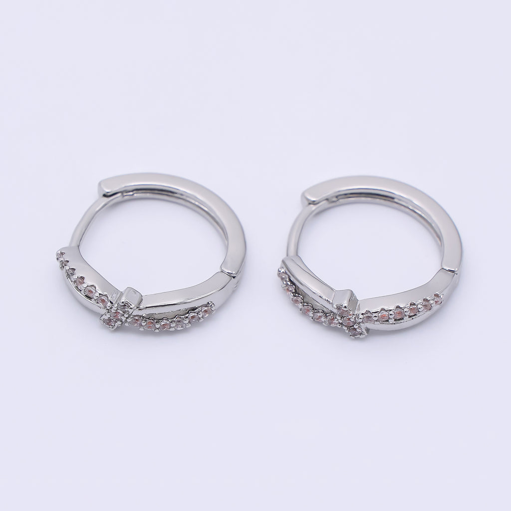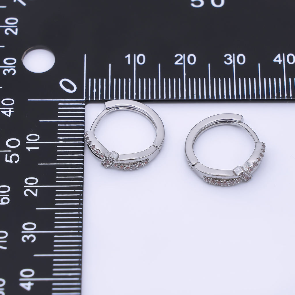24K Gold Filled Micro Paved CZ Cluster Bow Lever Back Hoops Earrings in Gold & Silver | AB1601 AB1602