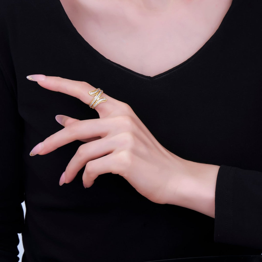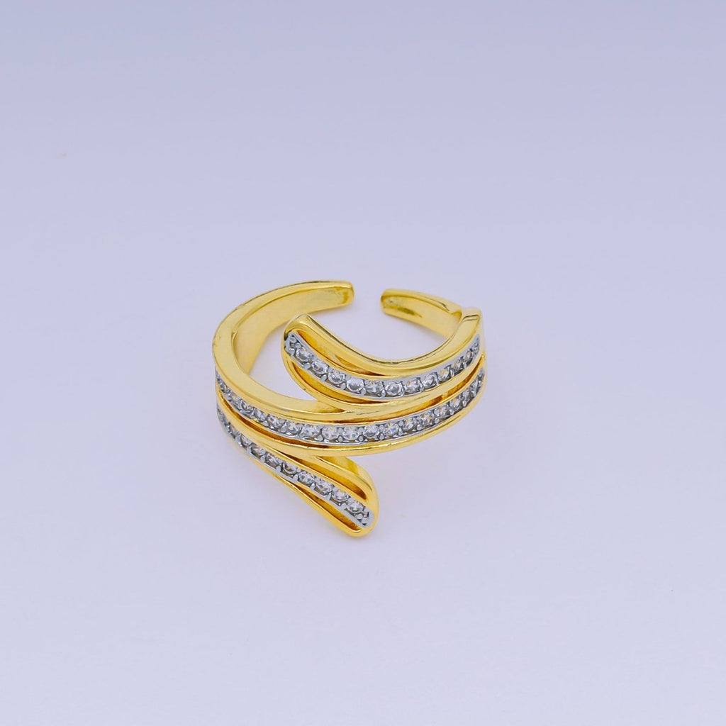 24K Gold Filled Micro Paved CZ Triple Line Wrap Adjustable Ring | O-1486