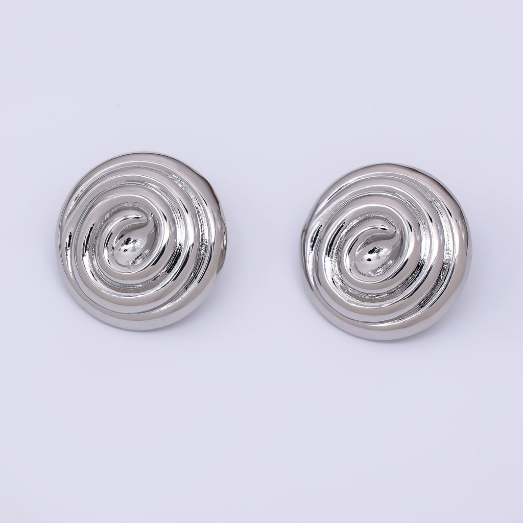 24K Gold Filled 24mm Spiral Textured Circle Round Dainty Stud Earrings in Gold & Silver | AJ-098 AJ-099