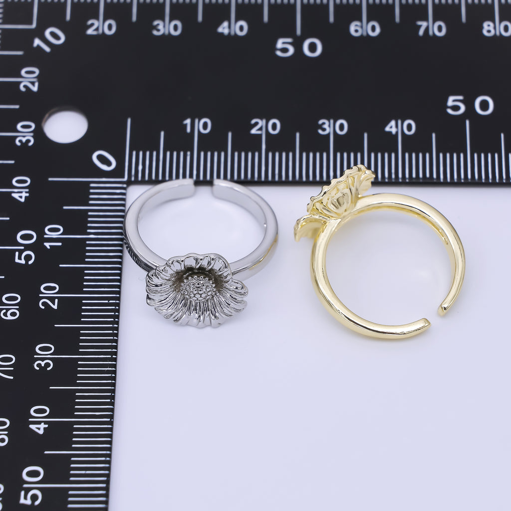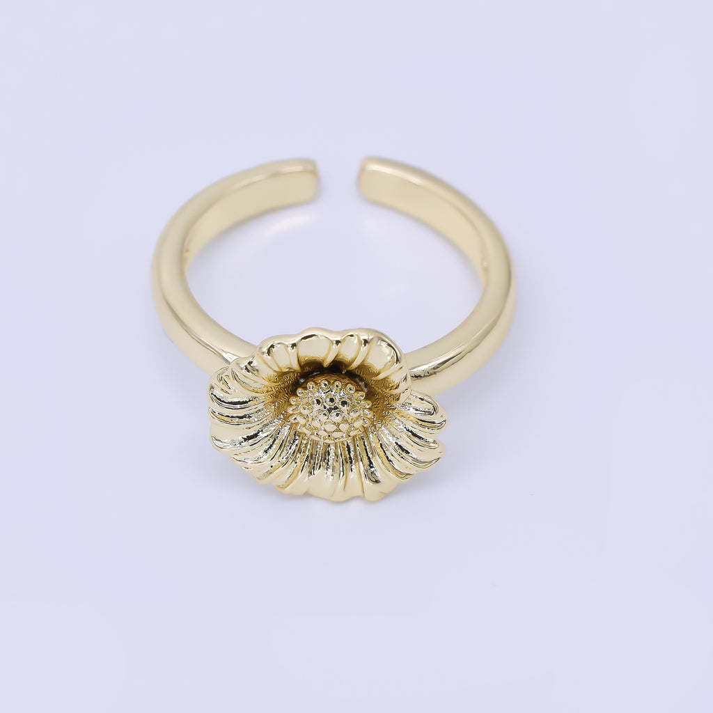 24K Gold Filled Sunflower Blossom Floral Solitaire Ring | O1613 O1619