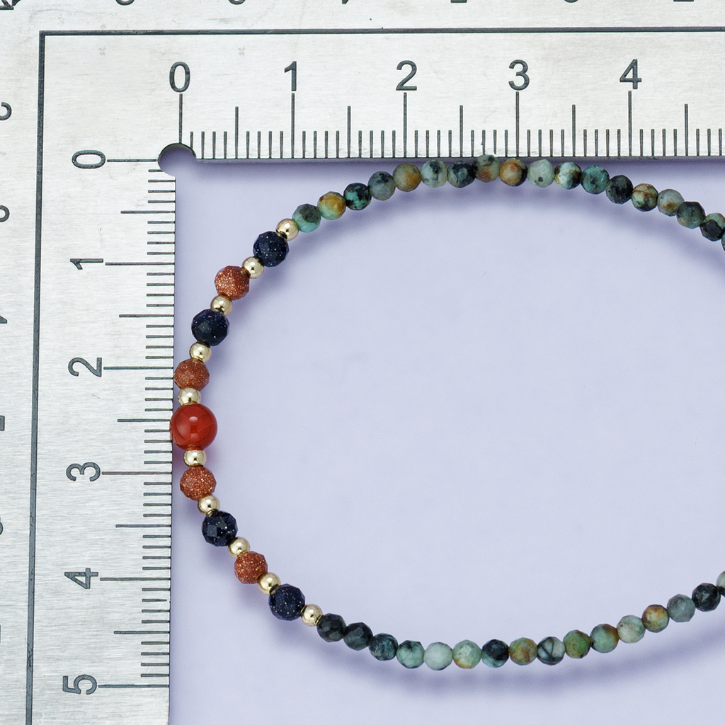 24K Gold Filled Sunstone Amazonite Round Multifaceted Gemstone Paperclip Chain Half 17.5 Inch Necklace w. Extender | WA-04201
