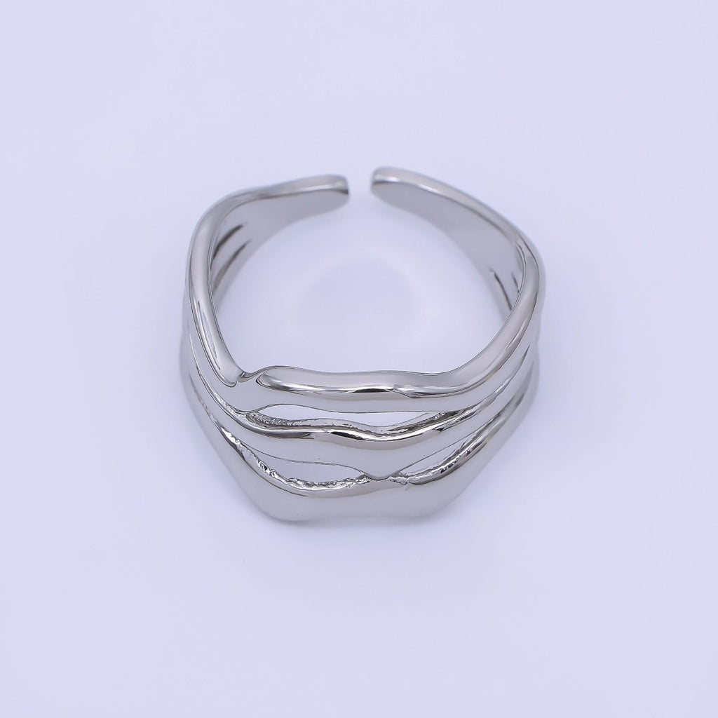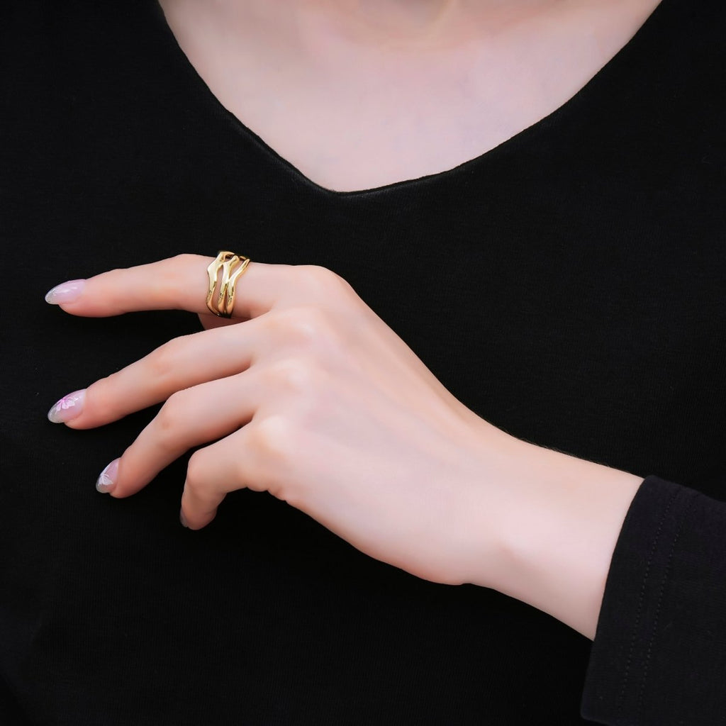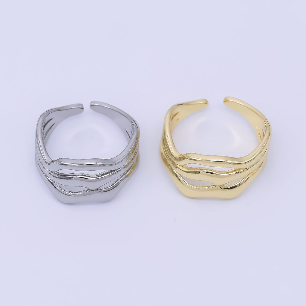 24K Gold Filled Geometric Triple Molten Band Ring in Gold & Silver | O1621 O1620