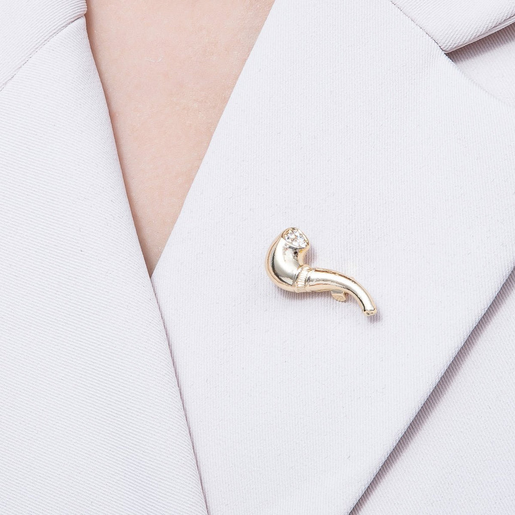 Gold 28mm x 12.5mm Clear Rhinestone Smoking Pipe Pin Brooch | BH-065