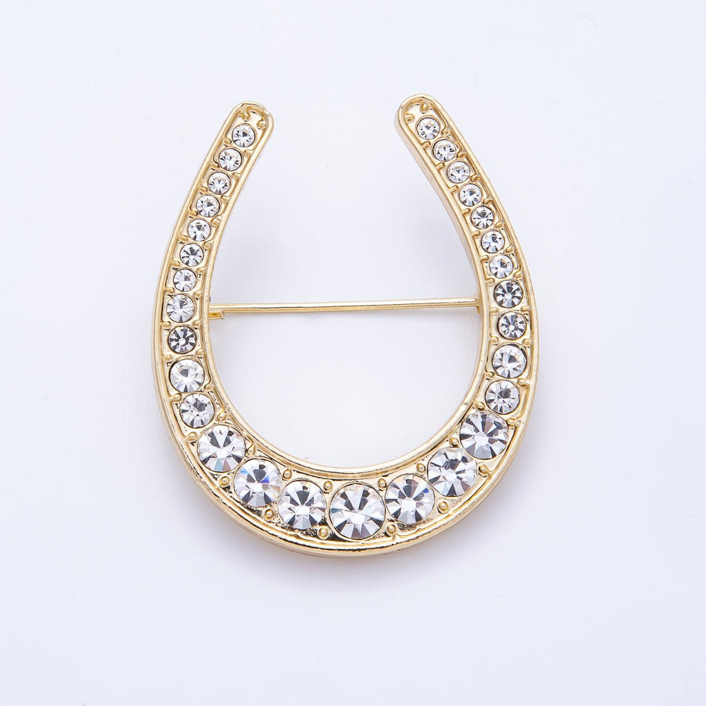 Gold 40.3mm x 33.7mm Clear Rhinestone Gradient Horseshoe Pin Brooch | BH-055
