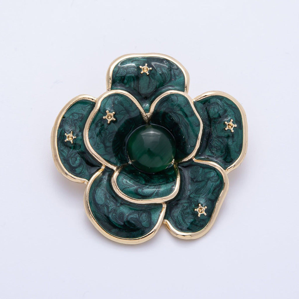 Gold 40mm x 38.4mm White, Green Enamel Flower Pin Brooch | BH-090 BH-091