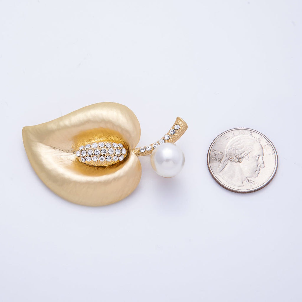 Matte Gold 58mm x 36mm Acrylic Pearl Leaf Nature Pin Brooch | BH-035